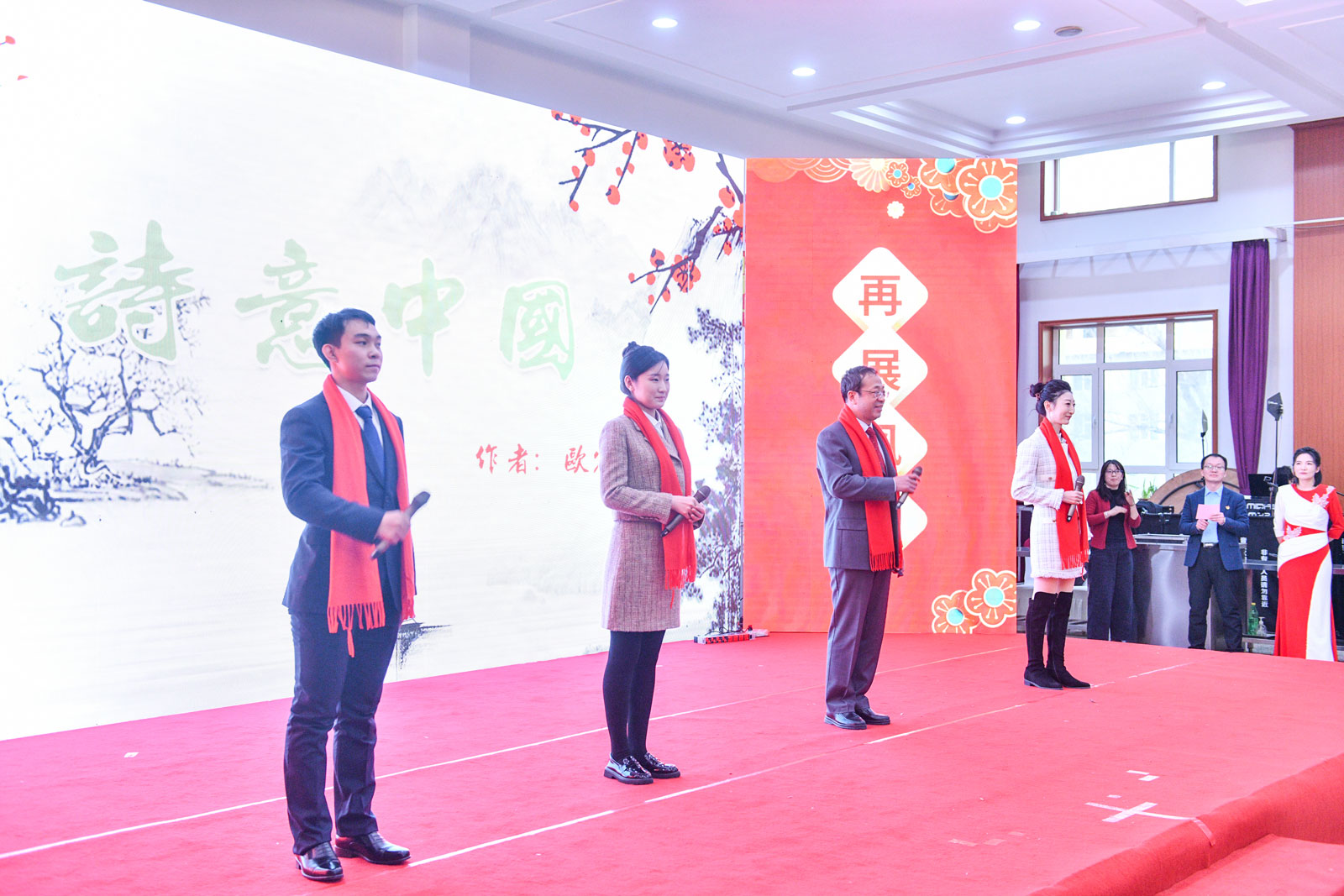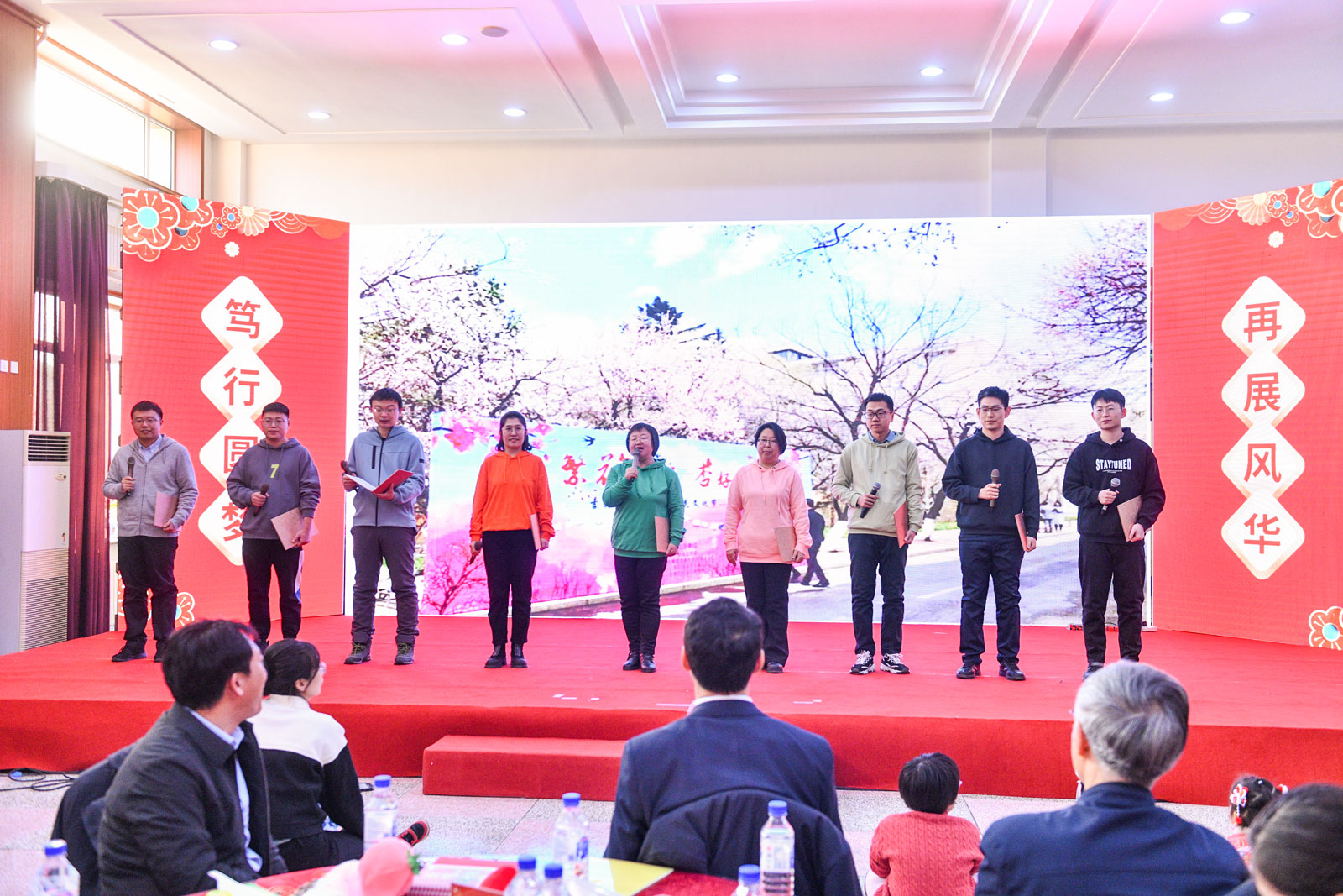 表彰大会结束后,新年联欢会正式拉开帷幕。元气十足的儿童街舞《打了个铁》铿锵有力,点燃了全场的激情。小合唱《光阴的故事》带大家回忆了一年来的点滴,更激发了大家奋进的动力。诗朗诵《激情燃烧的岁月》从黑白照片和老月亮门,到合校后的发展建设成就,让70后、80后、90后产生共鸣,道出了大家的共同心声。儿童舞《天地龙鳞》中稚嫩儿童的举手投足,激励着大家扎根传统、焕发活力。儿童架子鼓手扎实的基本功和饱满的情绪,让大家叹为观止。高难度小合唱《天路》《如愿》令人刮目相看。儿童舞蹈《武&蹈》既展现了世界武道的刚劲,也抒发了传统舞蹈的柔美。诗朗诵《诗意中国》专业的表演和饱满的情绪,充分展现了祖国之美。合唱《上春山》整齐的红色帽衫和开心的节奏,把热情带到了全场的各个角落。儿童歌舞《梦想家》把联欢会“笃行圆梦,再展风华”的主题烘托到了极致。小合唱《明天会更好》唱出了全院教职工团结一致、携手前行的共同期盼。儿童舞蹈《巴郎仔》专业的表演,把少数民族风情带给了每一个人。大合唱《奉献》诠释了为祖国奉献的科学家们的爱国之情与报国之志,感染了整个会场。