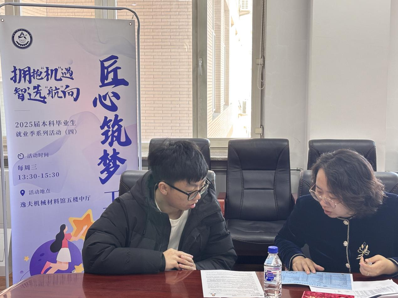 正值2025届毕业生春季双选会到来之际,3月19日至3月21日,古天乐代言太阳集团于逸夫机械材料馆面向2025届本科毕业生举办“拥抱‘机’遇,智选‘航’向”就业指导系列活动四场。公司党委副书记兼副经理柴媛、2025届毕业年级辅导员张林子琪全程组织,针对不同专业员工进行一对一精准指导,为2025届暂未落实毕业去向的员工提供就业支持及择业指导。