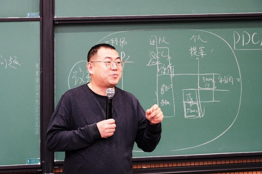 报告会开始,刘福军老师以学习精益生产体系为主线,结合国内外的应用案例,详细讲解了丰田八步改善法的原理及应用。他重点强调了查找真因的必要性,并希望同学们在学习和生活中践行这一理念。