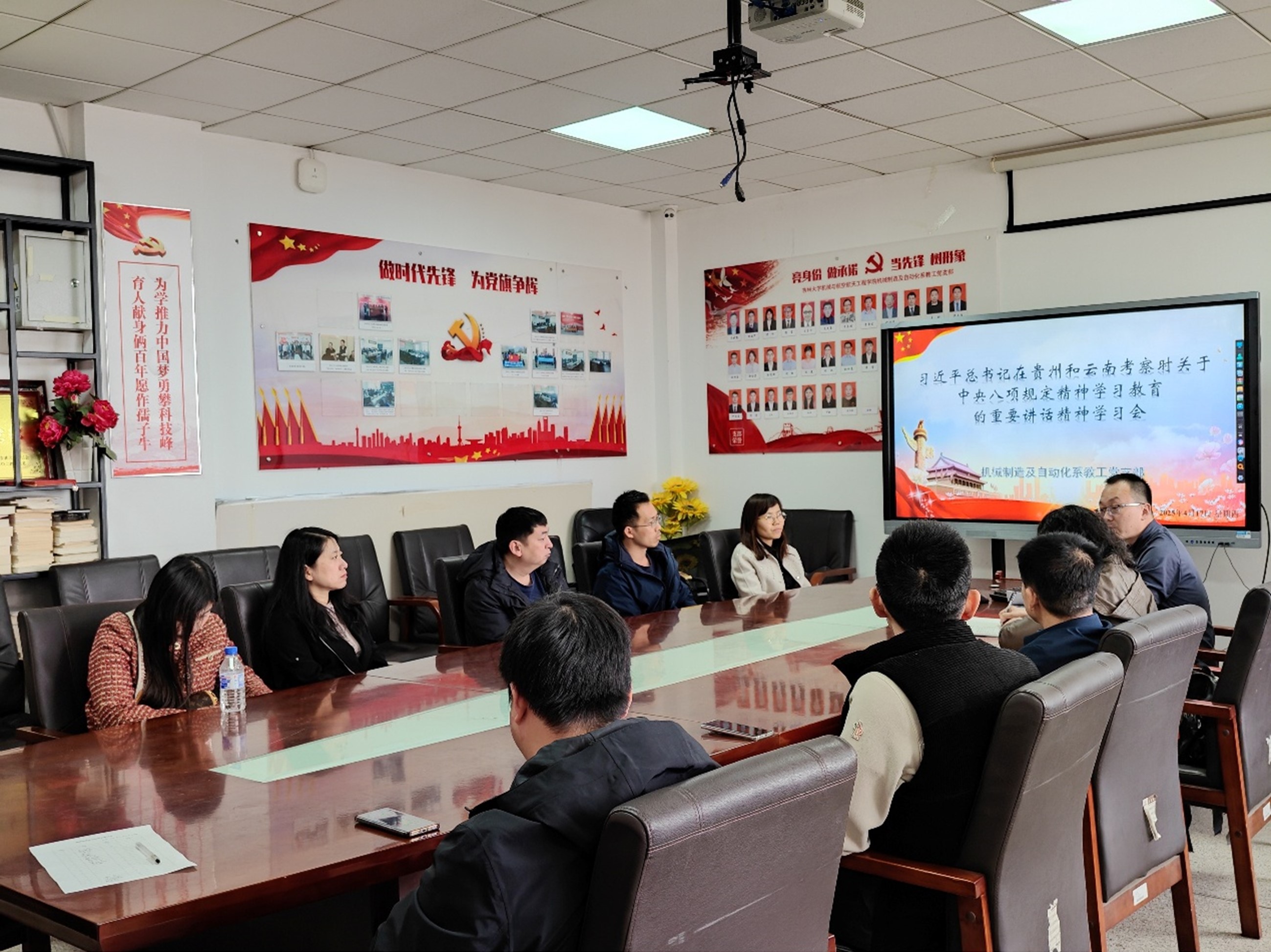随后,党支部书记刘欣对习近平总书记在贵州、云南考察时的重要讲话精神进行了全面而深入的解读。总书记着重强调,“党中央决定在全党开展深入贯彻中央八项规定精神学习教育,这是今年党建工作的重点任务。各级党组织要精心组织实施,推动党员、干部增强定力、养成习惯,以优良作风凝心聚力、干事创业。”“各级党组织和广大党员、干部要自觉增强学习教育的责任感紧迫感,联系全面从严治党的形势任务,联系本地本部门本单位这些年抓作风建设的具体实践,进一步吃透中央八项规定及其实施细则精神,把握相关纪律处分条规,为查摆问题、集中整治打牢思想政治基础。”