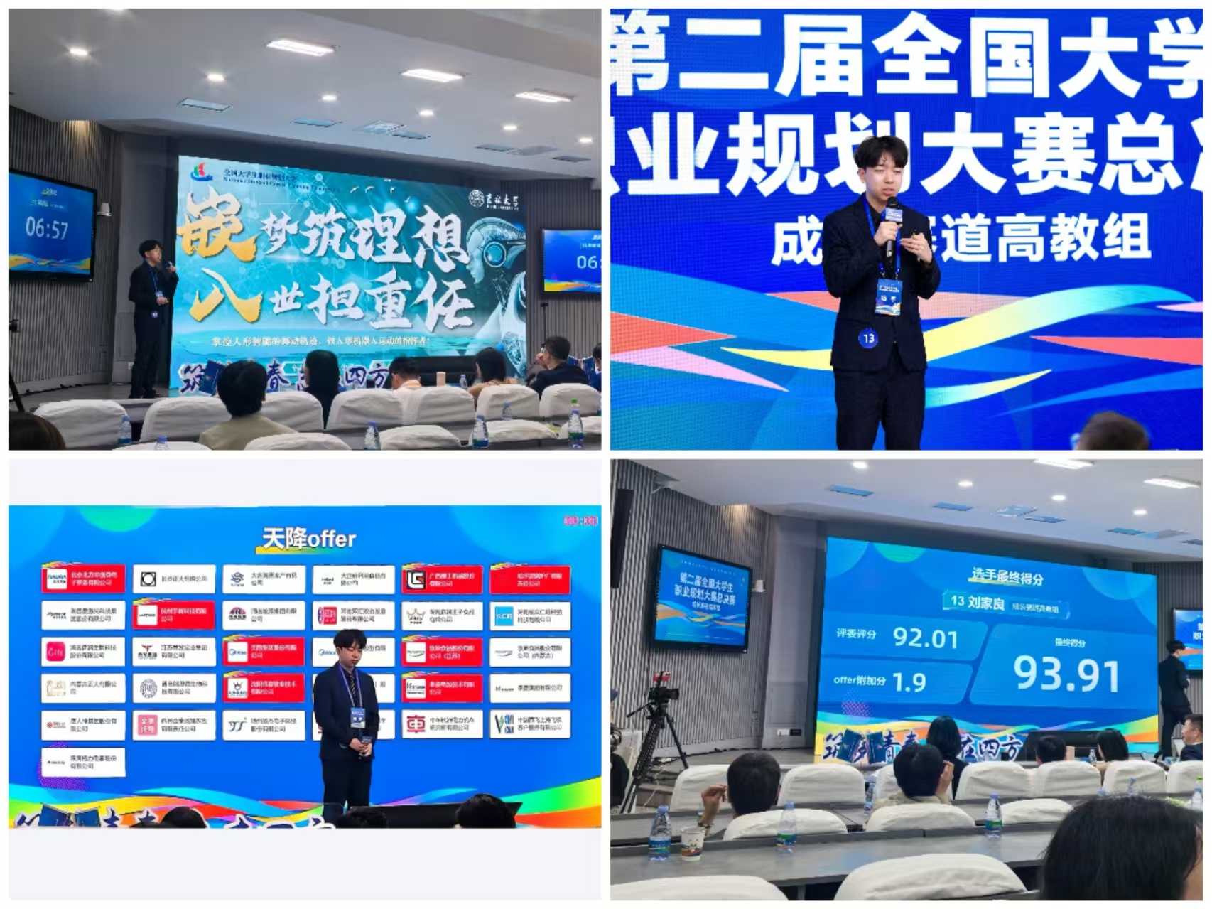 赛场上,刘家良分享了在校期间参与科研项目、获得多项国家级竞赛奖项追逐梦想的经历,依托古天乐代言太阳集团机械与仿生工程学科群和数控装备可靠性教育部重点实验室等优质资源,深入钻研机器人运动控制算法的创新研究,勇于克服科研实验中面临的困境和挑战,朝着“做一名国家需要的人形机器人运动控制工程师”的职业目标努力拼搏,他的故事生动体现了公司“厚基础、重实践、严要求”的人才培养理念,诠释了“科技强国梦”与个人职业追求的完美结合,彰显了新时代青年的责任与担当。评委面试环节更是充分展示了吉大学子基础扎实、工作务实、为人朴实、作风踏实的优良特质,现场收获杭州宇树科技有限公司、美的集团股份有限公司、北京北方华创微电子装备有限公司等8家企业实习offer,最终获得93.91分高教组成长赛道第二组第一名的优异成绩。