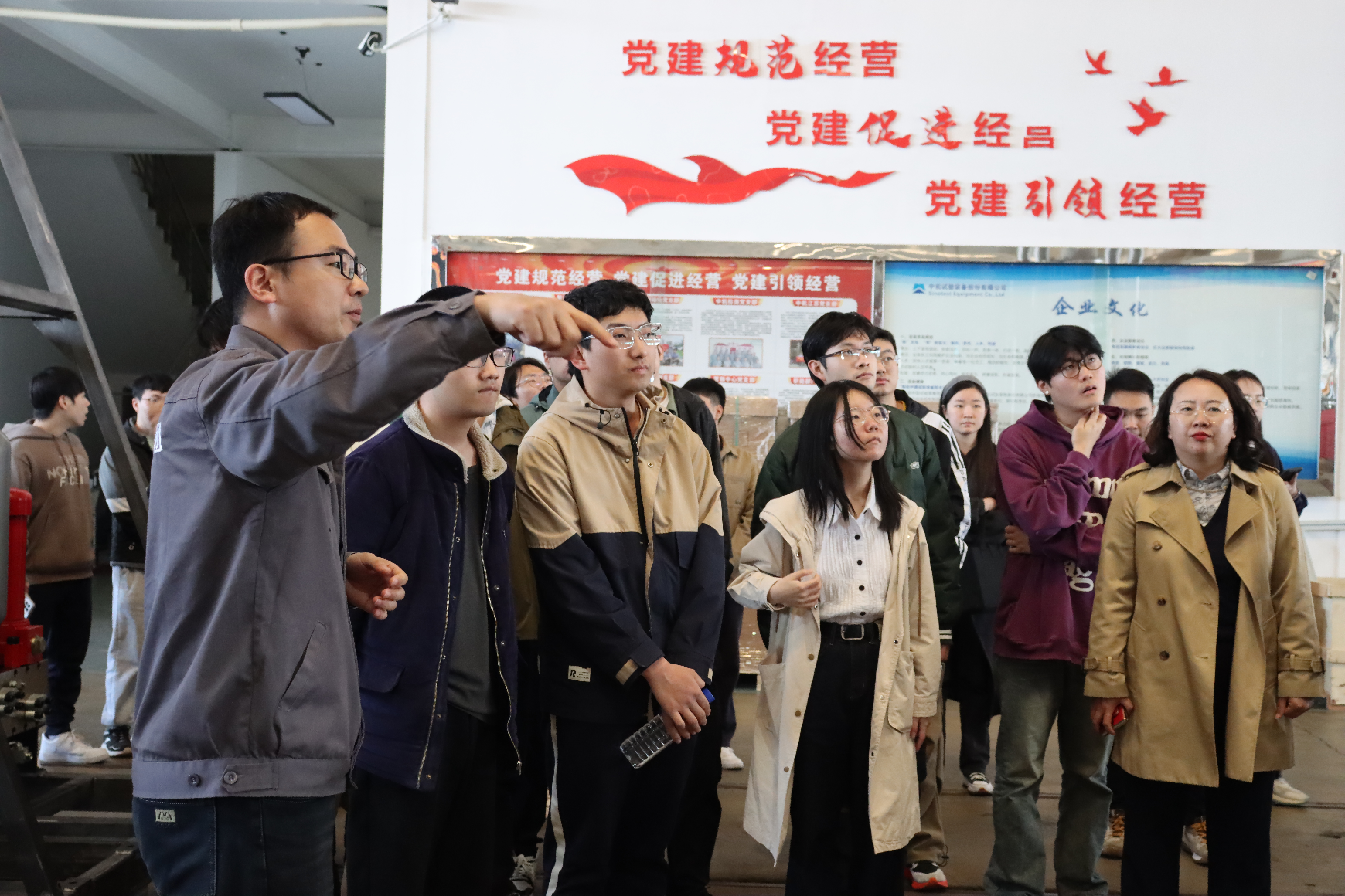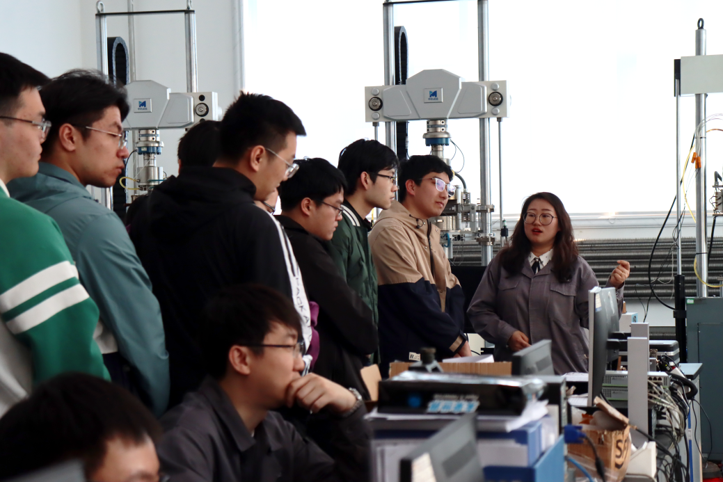 首先,中机试验装备股份有限公司人力资源部部长杨正旺从中机试验的发展历程、业务范围、企业文化等方面介绍了公司的总体情况。随后,师生们深入生产车间,参观了公司的试验装备板块、智能制造装备板块以及检测与服务板块,新工科创新创业实践基地党支部的员工党员们结合专业背景,就技术创新、职业发展等话题与企业技术人员进行了讨论。