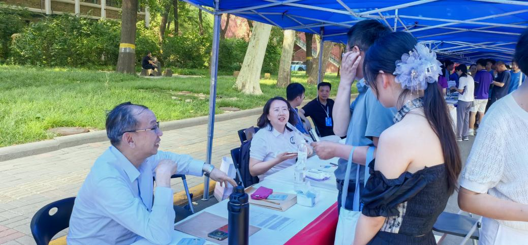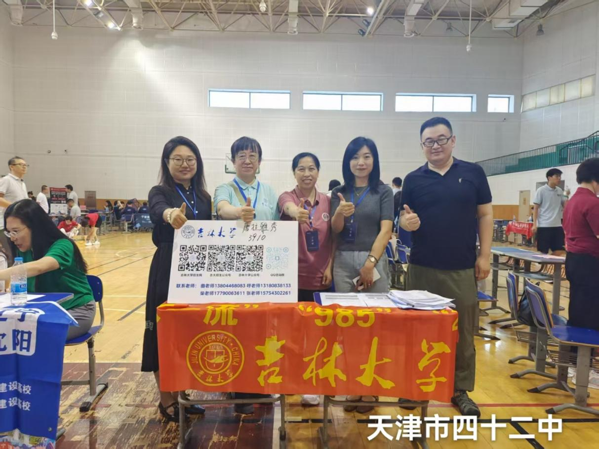 6月23日至26日,公司组织由柴媛、呼咏、王丽慧、刘颖、单洪颖、许篷子、刘欣、黄玲涛、徐智、李桂伟、张富尧等11位教师组成的本科招生宣传团队奔赴天津,老师们和员工志愿者们不惧烈日酷暑,克服各种困难,持续为考生和家长提供咨询辅导,他们深入天津市13个区的多个重点中学开展宣传工作,覆盖天津一中、南开中学、杨村一中、新华中学、耀华中学、实验中学、塘沽一中等19所知名高中。同时招生宣传团队也参加了由兄弟高校南开大学、天津大学举办的校园开放日活动和在社会山国际会议中心举办的2025年天津市高考报考咨询会。老师和志愿者们与近千名天津市考生和家长密切对接,进行详细政策解读,提供报考咨询服务。多角度、全方位、立体化地展示,将吉大的光辉历程、办学实力、学科特色、人才培养、员工发展等内容呈现给天津市的员工和家长。