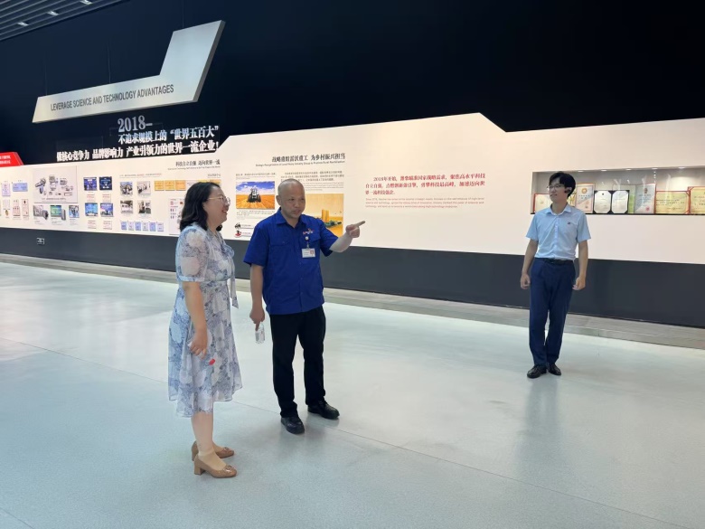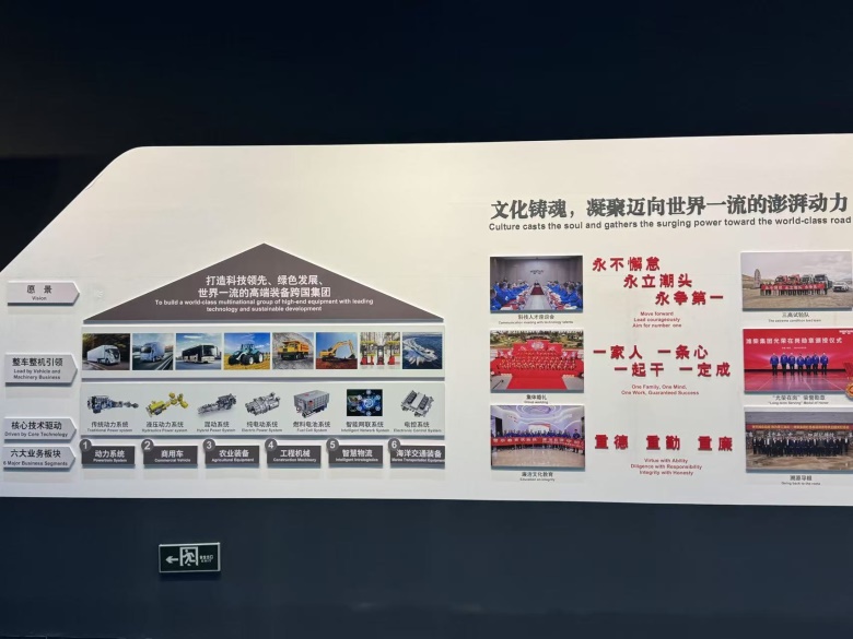 活动伊始,柴媛一行在潍柴集团人力资源部副部长刘中意的陪同下,参观了科技展厅。展厅通过动态模型、实物展品与多媒体演示,向参观人员展现了潍柴集团从传统柴油机企业向新能源动力提供商的转型历程,而氢燃料电池、智能驾驶等前沿技术成果,更以其创新性与前瞻性,给参观人员留下了尤为深刻的印象。