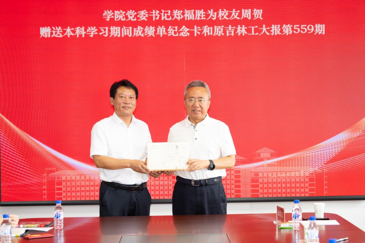 座谈最后,郑福胜书记代表公司向周贺员工赠送其本科时期成绩单纪念卡及原吉林工业大公司报第559期副本;公司员工代表向周贺学长敬赠公司员工设计的文创作品“吉小蟹”,表达机械学子对员工、前辈们的深切祝福和崇高敬意。