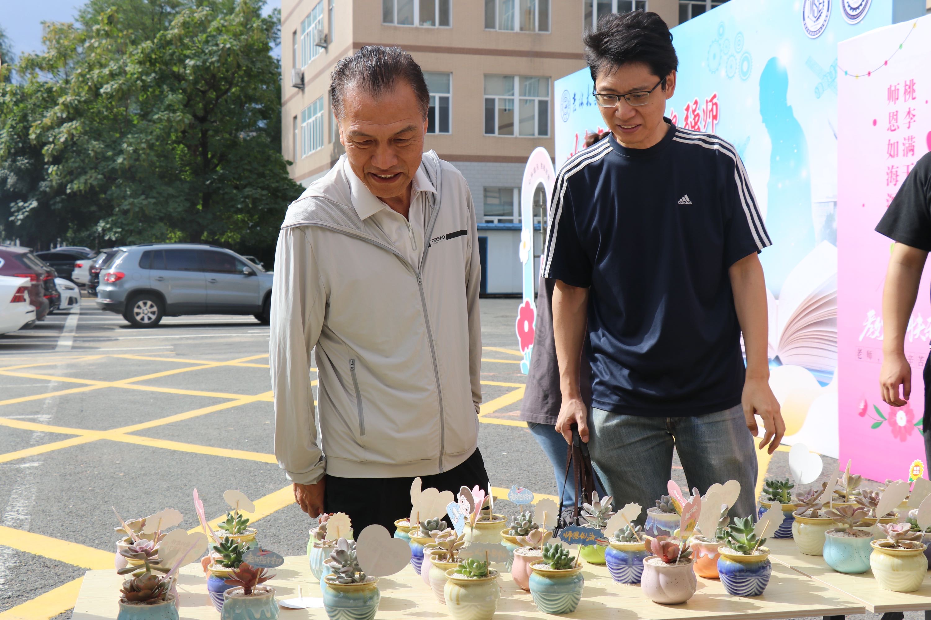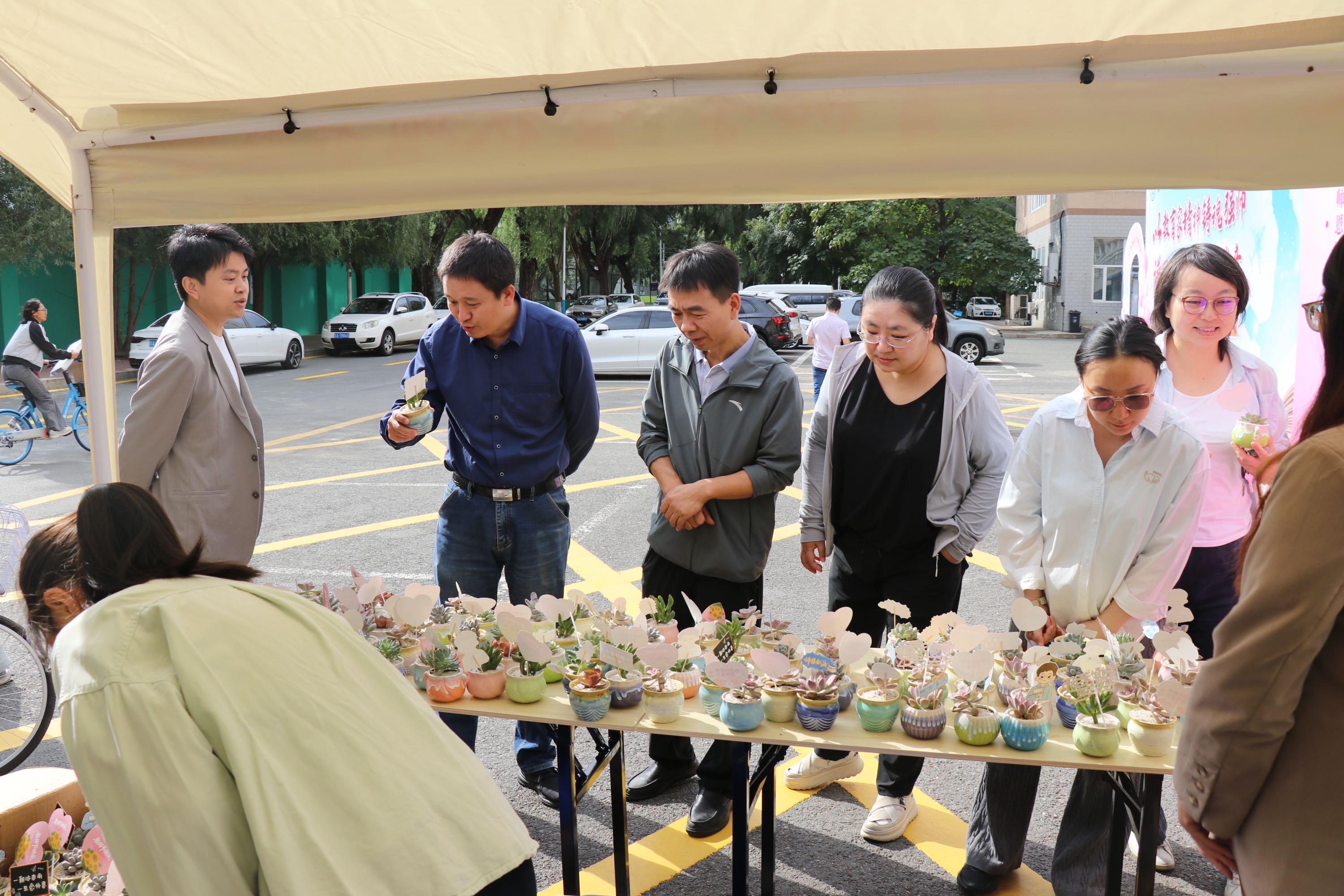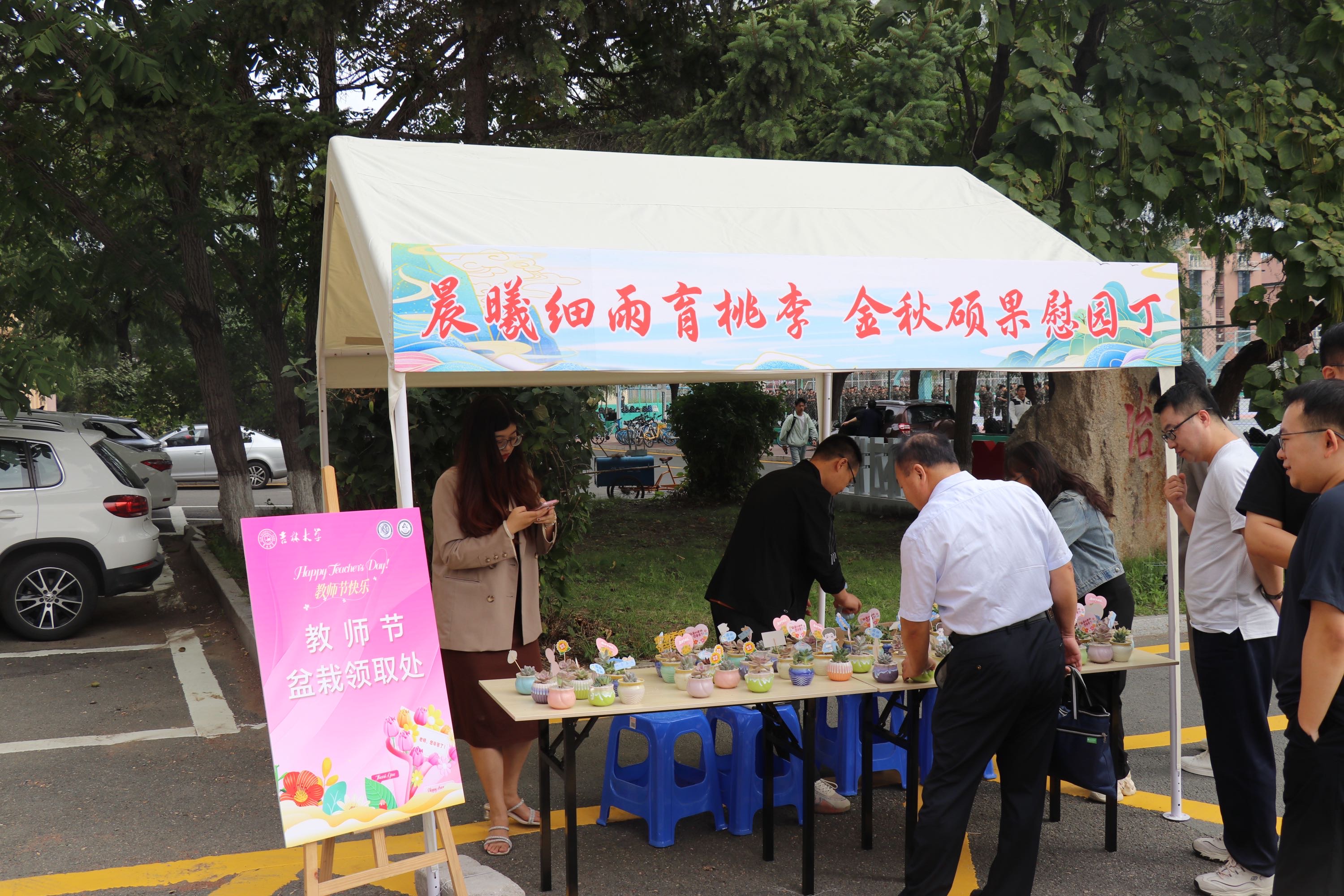 上午8时3分,慰问活动正式启动。现场为每位参与教师精心筹备了寓意 “耕耘与收获”的绿色盆栽作为节日礼物,同时精心布置主题展板与合影背景墙,吸引众多教师驻足拍照、定格温馨瞬间。