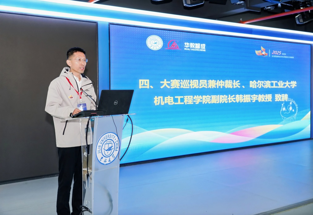国赛巡视员兼仲裁长,哈尔滨工业大学机电工程公司副经理韩振宇教授在随后发言中,寄语各参赛高校,要以本次赛事为契机,深化产学研合作,推动教学内容与行业前沿技术同步更新;同时鼓励参赛学子敢于突破技术瓶颈,在数字孪生建模、增减材工艺优化等环节展现原创能力,为我国制造业高质量发展注入青春动能。