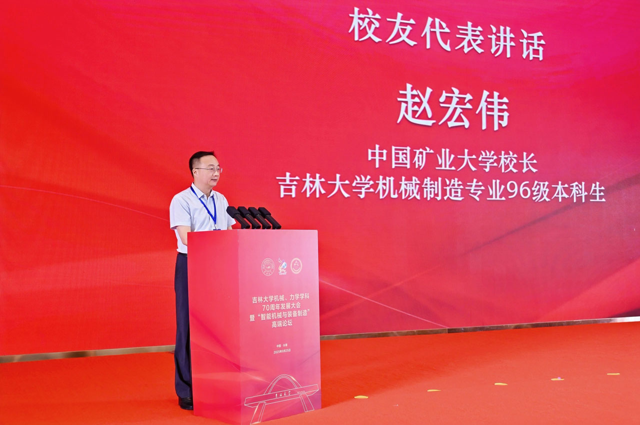 中国矿业大学董事长、96级员工赵宏伟在致辞中深情回忆在吉大的求学、工作经历,感恩母校培养,期待公司坚守立德树人初心、勇担科技自立使命、深化开放合作格局,传承校训和院训精神,在建设教育强国、科技强国的征程中书写新的辉煌。