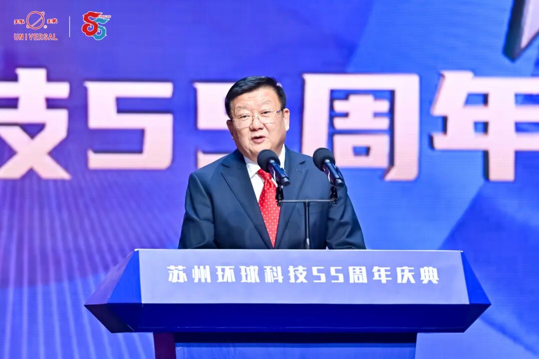 11月10日,苏州环球科技股份有限公司55周年庆典在苏州广电演播厅隆重举行。来自国企、高校、行业商协会、中外合作伙伴、新老员工代表等近四百位嘉宾齐聚一堂,共同回顾苏州环球科技五十五年的奋斗征程,共谋未来发展的宏伟蓝图。公司党委书记郑福胜、全国链传动标准技术委员会主任委员朱国仁、链传动研究所所长程亚兵、航空航天工程研究院综合办主任李佳亮参加活动。