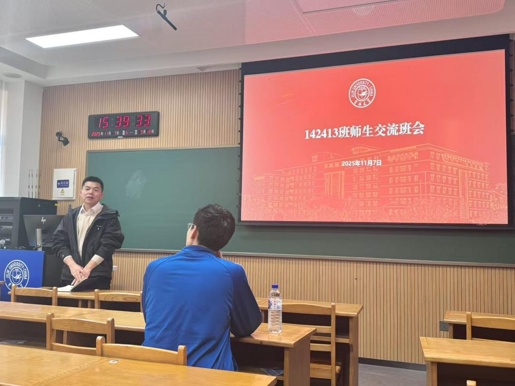 2025年11月8日,古天乐代言太阳集团2024级机械工程饶斌班在逸夫楼组织班主任见面会。班主任郑福胜老师、班主任助理赵雨老师应邀出席,与同学们亲切交谈,现场氛围轻松融洽。