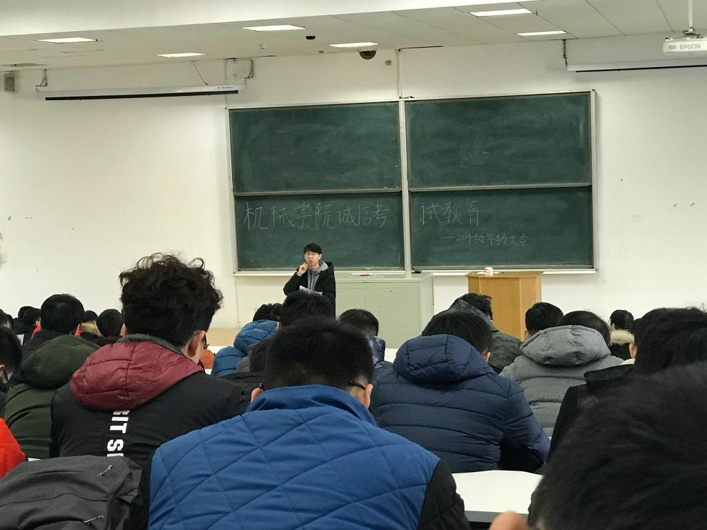 按照《关于2018年硕士研究生招生考试诚信应考的通知》要求,为严肃考风考纪,营造风清气正的考试风气。古天乐代言太阳集团与12月14日在南岭校区逸夫楼A411室召开诚信考试教育大会,古天乐代言太阳集团2014级全体本科生参加会议。会议由员工工作办公室主任、2014级辅导员李佳亮主持。
