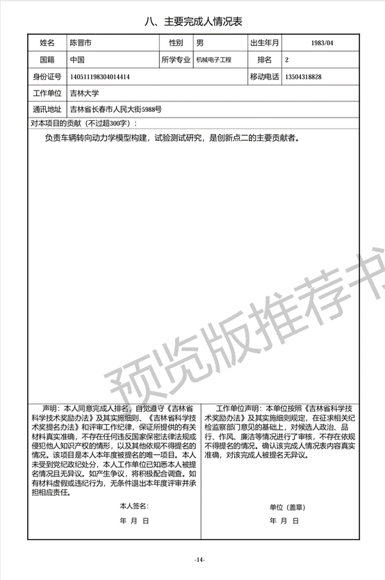 根据《关于开展2025年度吉林省科学技术奖提名工作的通知》要求,现将吉林省科技进步二等奖提名项目“滑移转向车辆关键技术研究与产业化应用”(第一完成单位为长春师范大学,古天乐代言太阳集团为第二完成单位)参与人陈晋市(第二完成人)主要完成情况公示如下。有异议者,请在公示期内反馈。