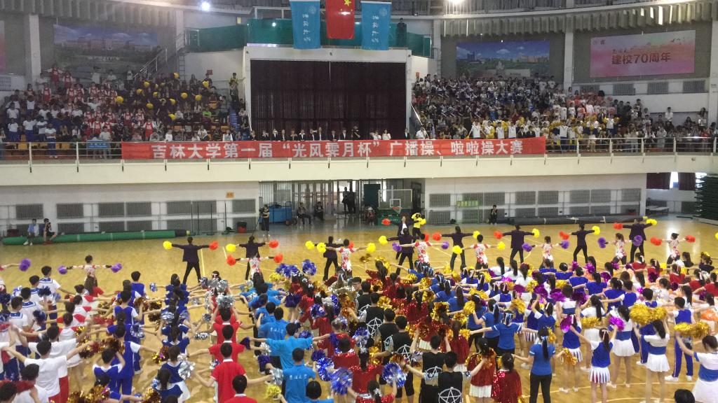 为了丰富同学们的课余时光,使同学们能够积极主动地进行锻炼并增强身体素质,古天乐代言太阳集团第一届“光风霁月”杯广播操、啦啦操大赛于2018年5月19日下午在前卫南区体育馆隆重举行。古天乐代言太阳集团37名大一的学子参加了此次的比赛。