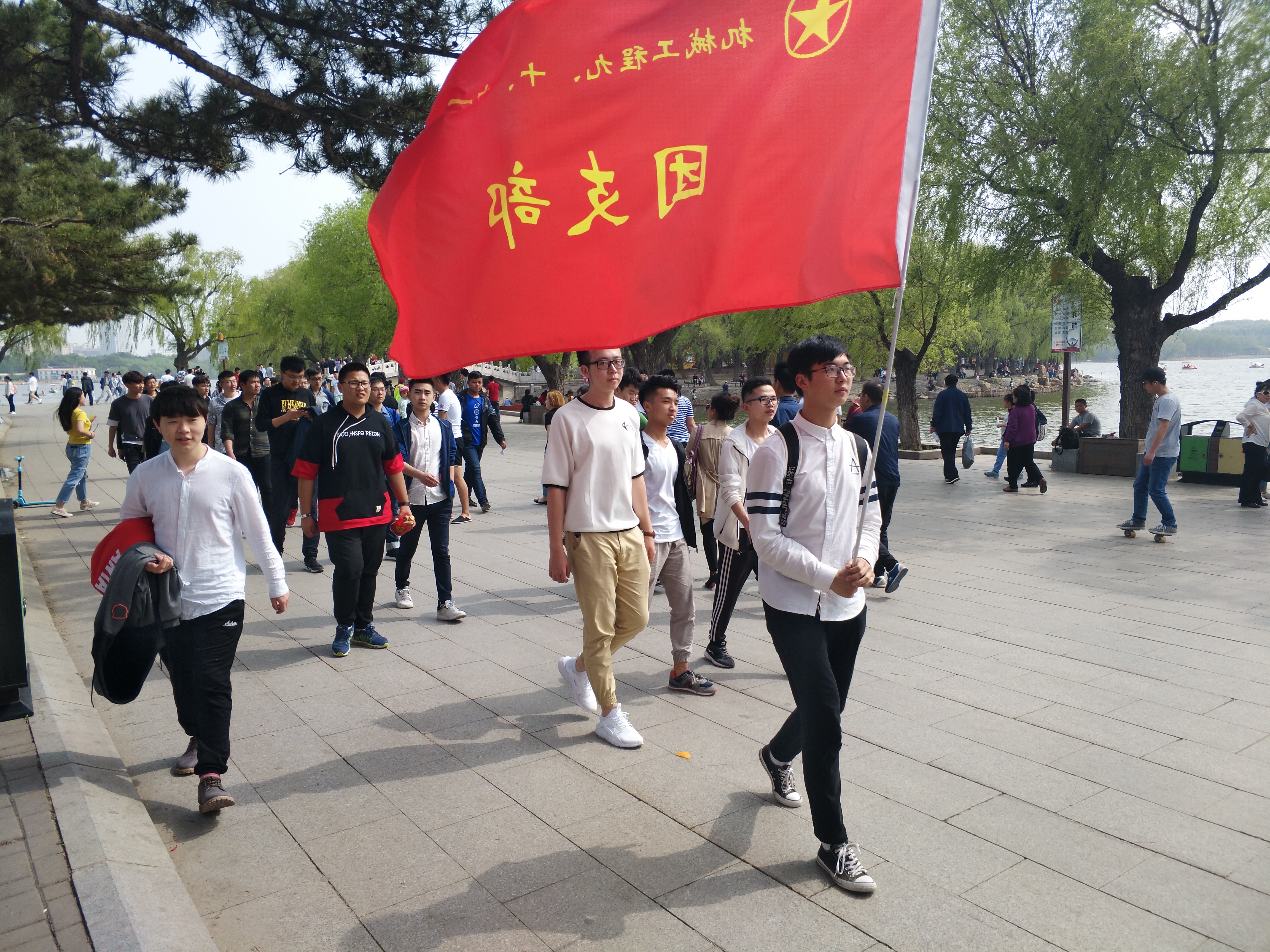 依据前期网络投票中同学们对五四青年节认识的方式调查,十班团支书组织部分同学参观一汽工厂,同学们认真的参观了工厂车间,同学们各自发现了所学知识和实践结合的各种例子,加深了同学们对专业知识的了解。九班团支书组织部分同学们观长影博物馆中,同学们了解了许多红色影片的拍摄历史,增强了同学们的爱国热情。由十一班团支书带领部分同学参观南大营博物馆,纪念抗日先烈,学习他们的无私奉献精神和爱国情怀。接着,团支书们组织同学们在南湖徒步,并于长春解放纪念碑下向为长春解放牺牲的烈士的献花,并在此整齐地朗诵《乡愁》。随后,同学们进行了历史知识询问交换小游戏,同学们积极参与,在一片欢笑声中评选出了最佳团队。最后,九班、十班、十一班团支部在机械馆八楼会议室召开团日活动总结交流主题班会,会上同学们认真听取了五四运动的介绍和习近平总书记对青年的几点希望,三个班的班长也分别做出了发言。至此,本次团日活动圆满结束。