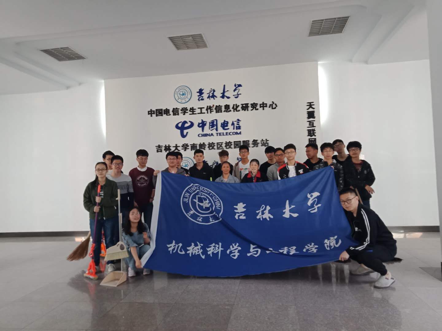 在两个班的团支书进行了此次活动的前期准备之后,5月10日两个班顺利地在逸夫楼A508召开了关于此次团日活动的主题班会。班会上,十四班团支书苏海林向同学们介绍了本次团日活动的主题,并带领同学们学习了习近平总书记在五四青年节的讲话,十五班团支书赵越向同学们介绍本次活动的流程,让同学们对本次活动有一定的了解。接着两个班的团支书与宿管阿姨于5月11日敲定清扫日期,并在两班班委的带领下于5月13日早八点至九点三十分在十一公寓分五队进行清扫,虽然这个过程是辛苦的,但是同学们都认为很有意义。下午出发去伪满皇宫,两班先于基础楼前合影留念进行活动启动仪式,接着在两点出发去伪满皇宫旧址进行参观,了解伪满洲国的历史,让同学们以史为鉴,懂得为祖国的富强贡献青春力量。两班同学又于5月16日在逸夫楼A501进行五四活动话剧表演,增加本次活动的趣味性。最后,5月17日,由两班班长及团支书组成寻访小组,前往革命老兵家中进行拜访慰问,听老兵讲过去的故事和抗战历史并传达给两班同学。