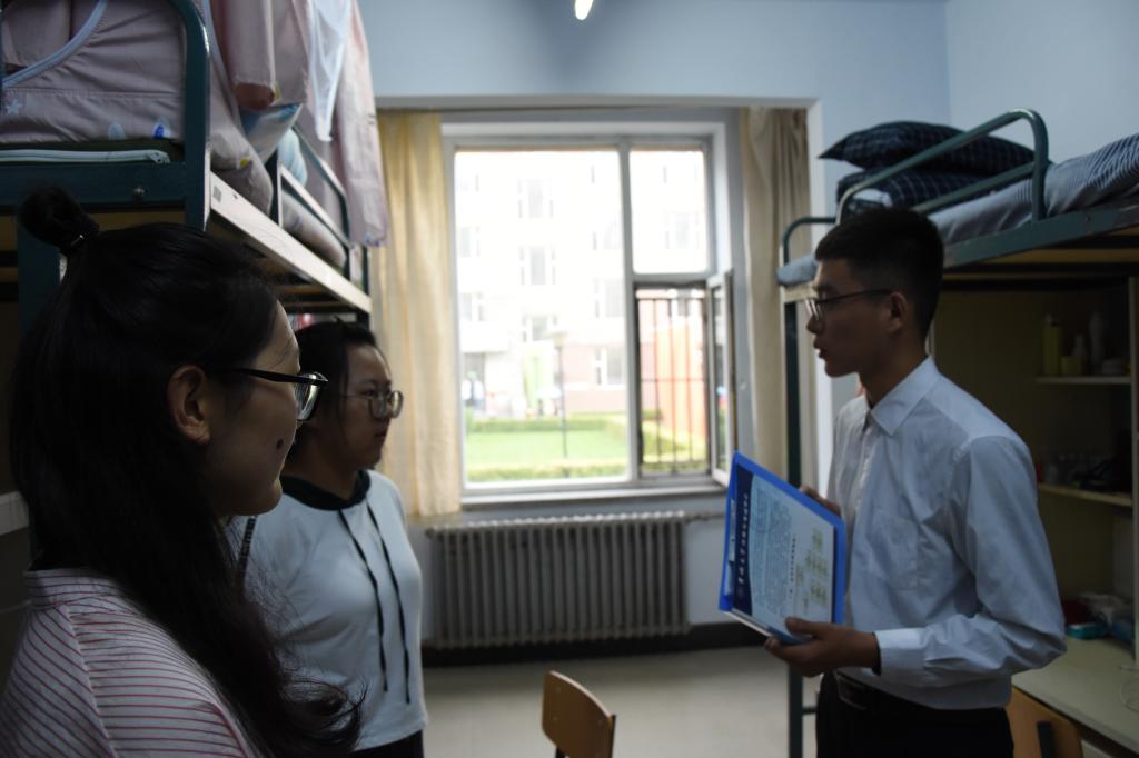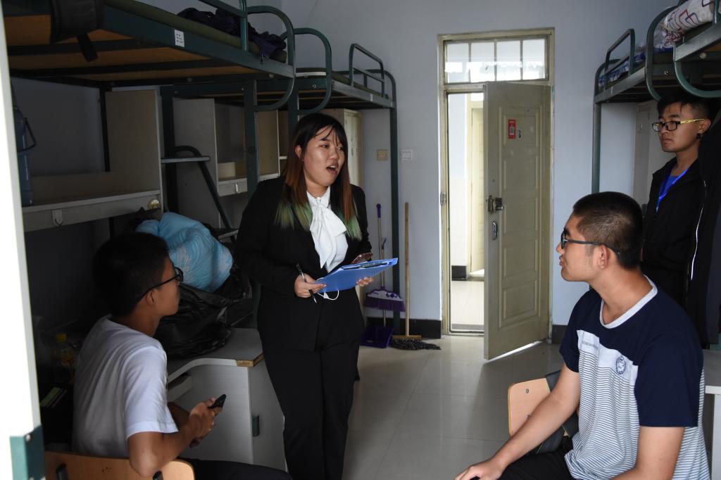 大学寝室干净整洁,同学们十分满意。辅导员助理热心走访了每一位同学,同学们也向辅导员助理们提出了关于水电的使用情况、不允许使用的违禁物品等问题。辅导员助理们对此进行了详细的解释,并基于自己的学习生活经验提出了一些建议,同学们感觉受益匪浅。他们告诫员工们:大学里不要沉迷于网络游戏,要深知学习的重要性,不能荒废学业,并且向员工简要介绍大学中的学团社团等员工组织。他们分享了自己的大学经验及教训,希望同学们能够合理地安排自己的学习时间和课余时间及精力。扩大自己的交际圈,充实且有意义地度过自己的大学时光。