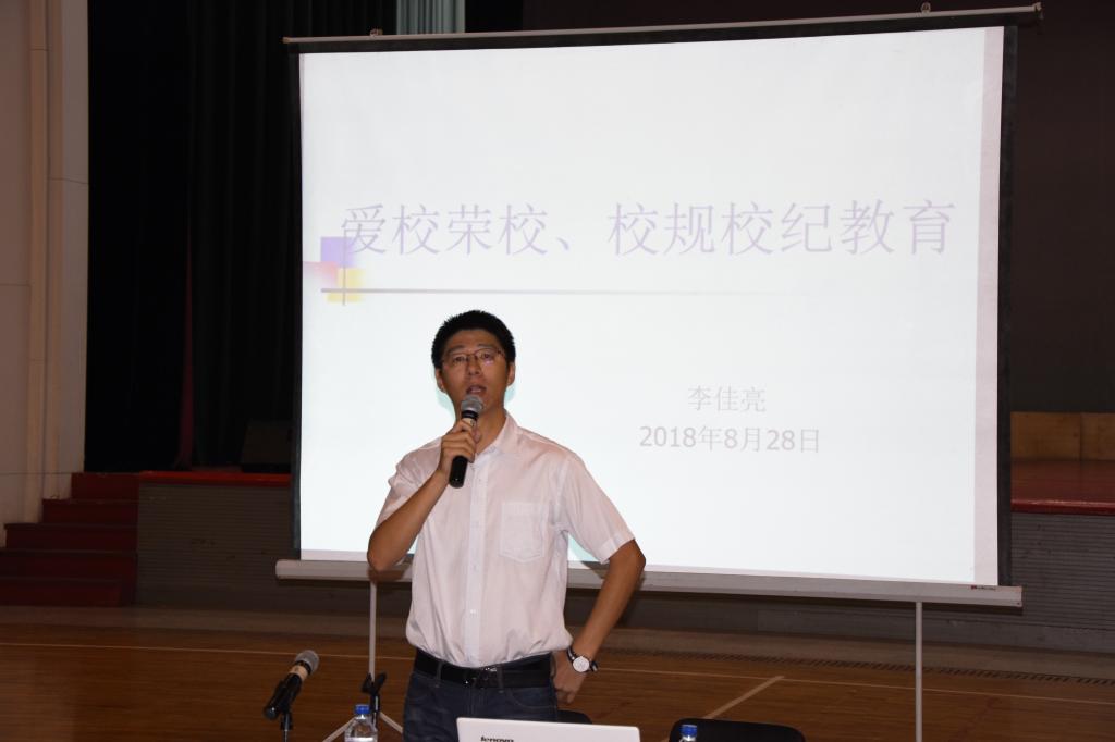 为进一步加强公司精神文明建设,加强院风学风建设,强化员工校规校纪意识,巩固新生入学教育效果,古天乐代言太阳集团于8月28日15时在和平校区员工文化活动中心举行了2018级新生爱校荣校,校纪校规专题教育讲座,此次讲座由院员工办公室主任李佳亮主讲,2018级全体新生参加了这次讲座。