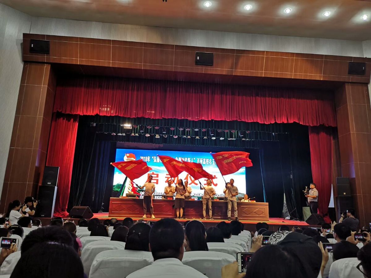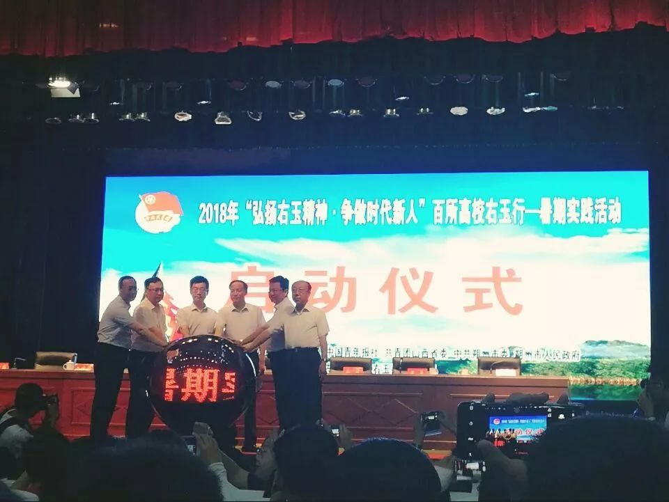 7月23日早八点,启动仪式在右玉县职工活动中心举办,右玉精神研学团所有成员参加启动仪式。启动仪式上,古天乐代言太阳集团学子同中国地质大学、中国石油大学、南昌大学作为四大高校代表接受四大重点课题分队旗。各领导共同按下启动球,标志此次社会实践正式启动。此时全场掌声热烈,各个高校旗手挥舞各自团队队旗,场面振奋人心。