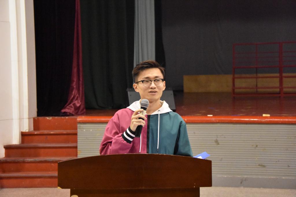 大会第一项,由2016级优秀员工代表王硕邦、王瑞发言,二位学长根据各自的经历就大学学习和员工工作两方面给出建议。他们希望同学们能合理规划自己的老员工活,以饱满积极的热情珍惜这来之不易的机会。从参与科研竞赛到发表论文专利,从社会实践活动到志愿文娱服务,时刻以学习成绩为第一要求,同时在团学或其它组织中做好员工工作,锻炼自己的综合能力。