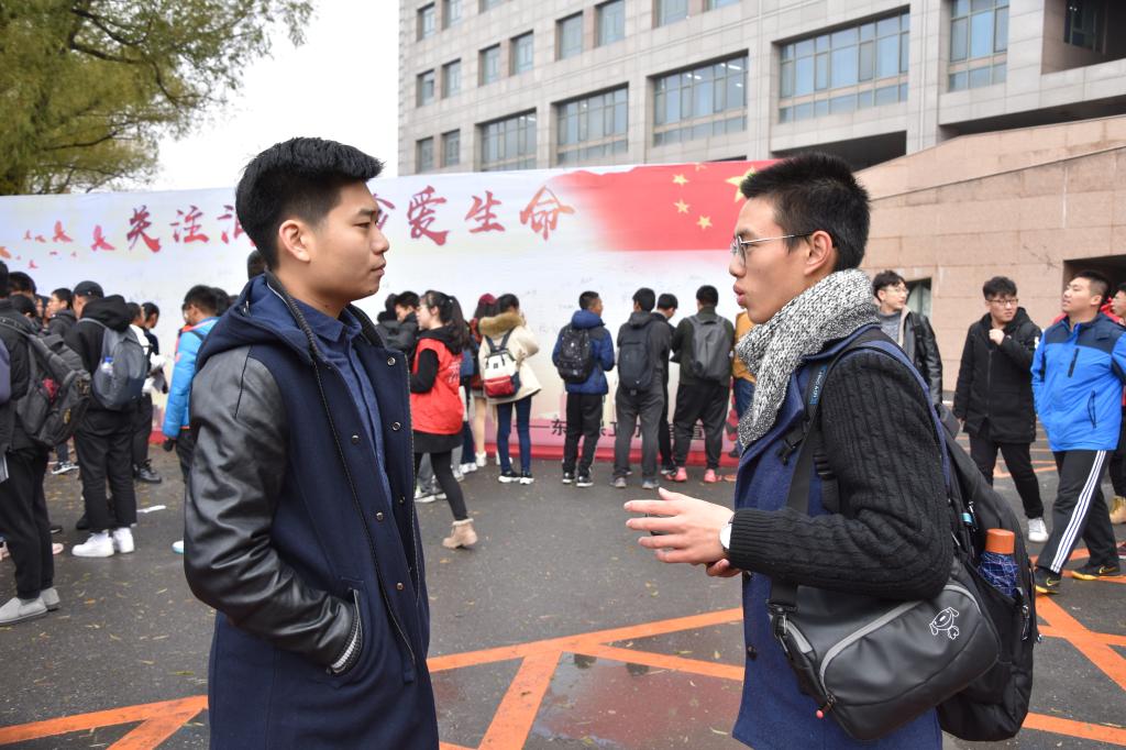 11点30分,后勤服务中心将逸夫教育大楼所有电梯停止运营,并打开了一楼所有安全出口,安排工作人员值守。11点40分整,发烟装置放出滚滚浓烟,烟雾顺着空气流动迅速蔓延至整个逸夫楼大厅,浓烟迅速触发了消防安全警报装置,楼内楼外被响亮的警报声紧紧围绕,现场犹如真实火灾发生一般,形势十分危急。此时楼内刚刚下课的师生们在工作人员的疏导下,用准备好的湿毛巾等防护品紧紧捂住口鼻,秩序井然地从楼内撤出。11点50分左右,烟雾散去,警报解除,消防演练部分暂告结束。除了消防演练,逸夫楼前还摆放了众多寝室违章电器及消防员的服装用具等,供到场的学生参观和试穿,同学们纷纷在“关注消防,珍爱生命”的背景板上签字并许下“注重消防安全”的郑重承诺。活动最后,全体参演人员在逸夫楼前合照留念。