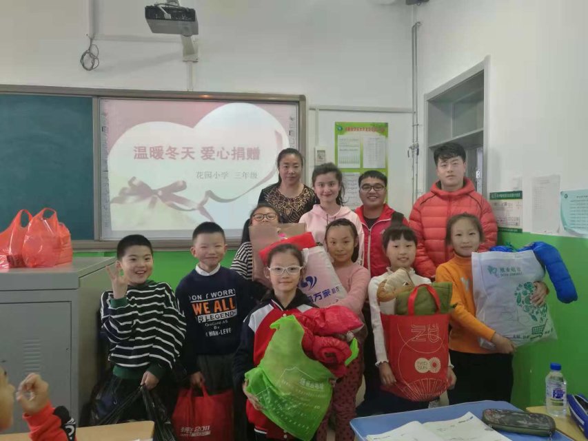 在事先联系和沟通之后,花园小学的黄老师组织同学们将自己所准备捐赠的衣物打包好,放入了备好的收纳袋中。同学们捐赠的衣物数量在四件到十五件不等,种类大多数是一些过冬所需要的棉衣、内衣和保暖裤等。在这些衣物中,有的只穿过一两次,有的甚至是新买的,足以体现花园小学的孩子们对同龄人的关爱和帮助,也充分展示了孩子们善良互助、懂得奉献的精神。每位参与本次活动的同学都希望自己所捐赠的衣物能够力所能及地帮到那些需要帮助的新疆孩子们,祝愿新疆孩子们能够幸福生活,努力学习。捐赠活动最后,工作人员给每一位参与捐赠的同学送出了精心准备的小礼物,并与花园小学的师生们共同合影留念。