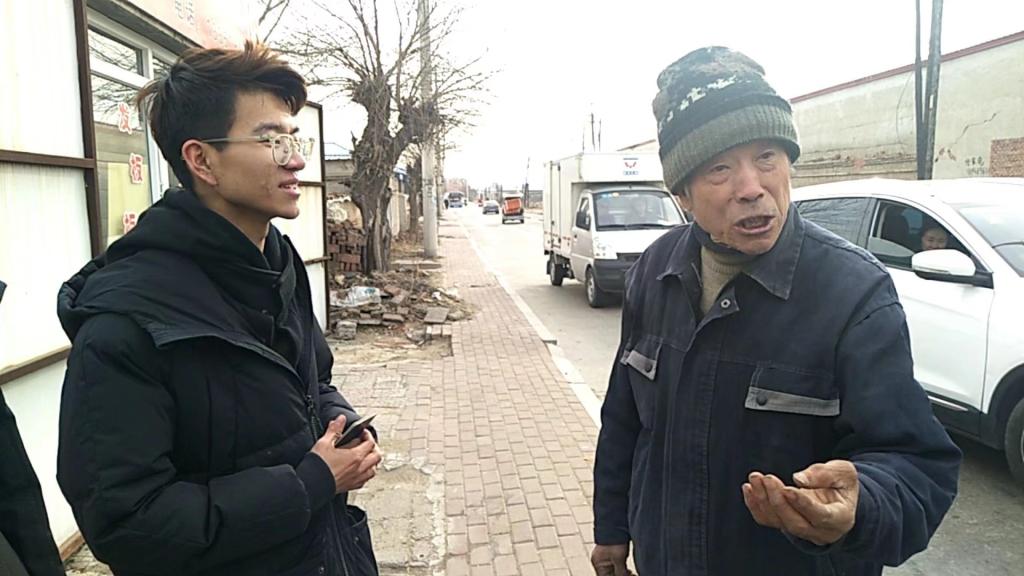 队员们分成了两组,采访小组一人手持证件采访,一人拿着手机录像,在县城主街寻访往来行人和居民商贩。各个小组都选择了不同年龄段的人以期获得更全面的数据。纵使正值冬末,街头采访时的寒风凛冽催得村民行色匆匆,但大多数人仍耐心地接受了采访,配合地回答了实践队员们的问题。采访小组以近几年来县城建设的变化对乡民生活的影响为主要问题,其中包括了消费水平、医疗保障制度等多个方面。两个小组当日采访了街边商贩店主、行人员工共计100余人,因时间和天气的限制仅进行了短暂的交流,被访者的回答表现出他们对家乡变化的欣喜:在教育,收入,医疗等方面都有了很大的改善,他们的家乡在新中国的成立后,特别是在改革开放之后,正在一步步走向更美好的明天。