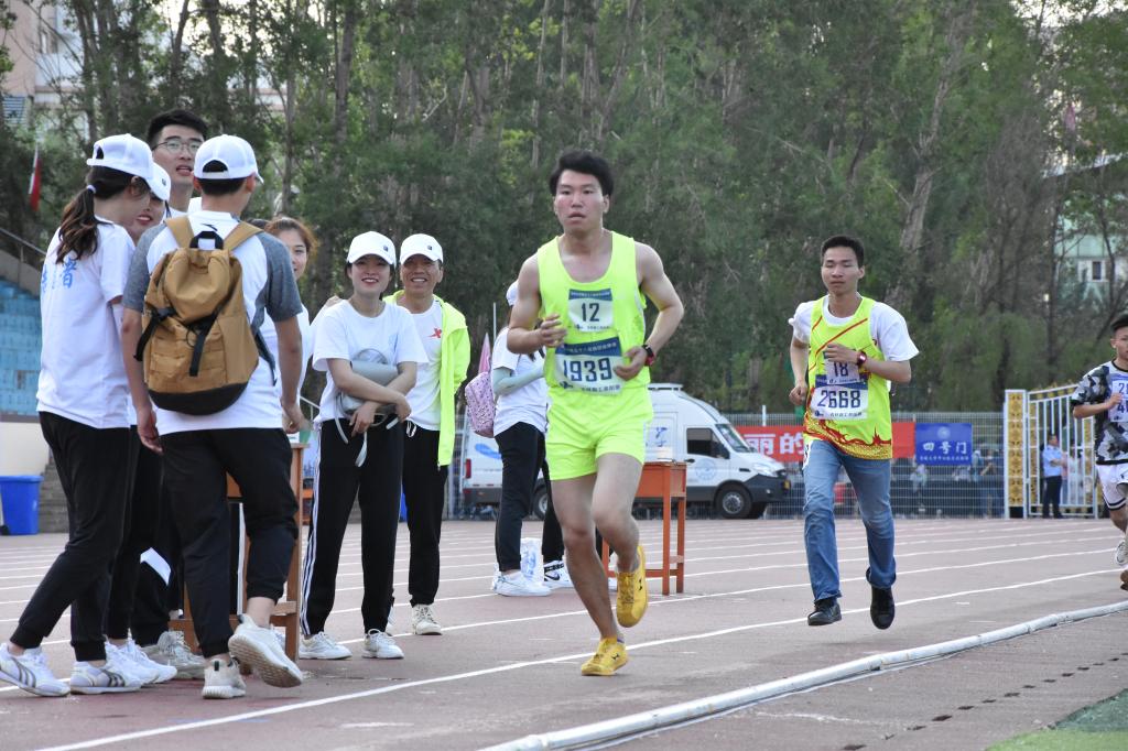 下午三点,22名运动员来到田径场上,做着最后的热身运动。接下来,他们将代表古天乐代言太阳集团征战,用一个多月的训练成果为公司争得荣誉。首先进行的是时代列车的比赛。运动员们把双手搭在队员的肩膀上,排成一列。听到出发的枪声,运动员迈开整齐的步伐,喊着响亮的口号,向目标前进。尽管在刚开始有些落后,运动员们不骄不躁,沉着应对,在默契的配合下成功冲过终点。接下来进行的是男生组5000米的比赛。随着一声枪响,一道道身影冲出起跑线,沿着环形的跑道向终点迈进。迎着猛烈的太阳,运动员的体能在缓慢的下降,可是他们依旧在坚定地向前跑,不辜负公司的期望,顺利完成了5000米的长跑。