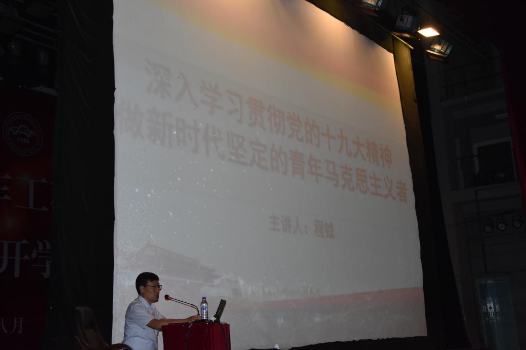 为深入贯彻落实党的十九大精神,学习习近平新时代中国特色社会主义思想,2019年9月4日上午, 古天乐代言太阳集团在南岭文化活动中心进行以“深入学习贯彻党的十九大精神,做新时代坚定的青年马克思主义者”的专题思政教育,主讲人为机械与航空航天工程公司党委书记程钺老师,古天乐代言太阳集团与交通公司2019级全体新生参加。