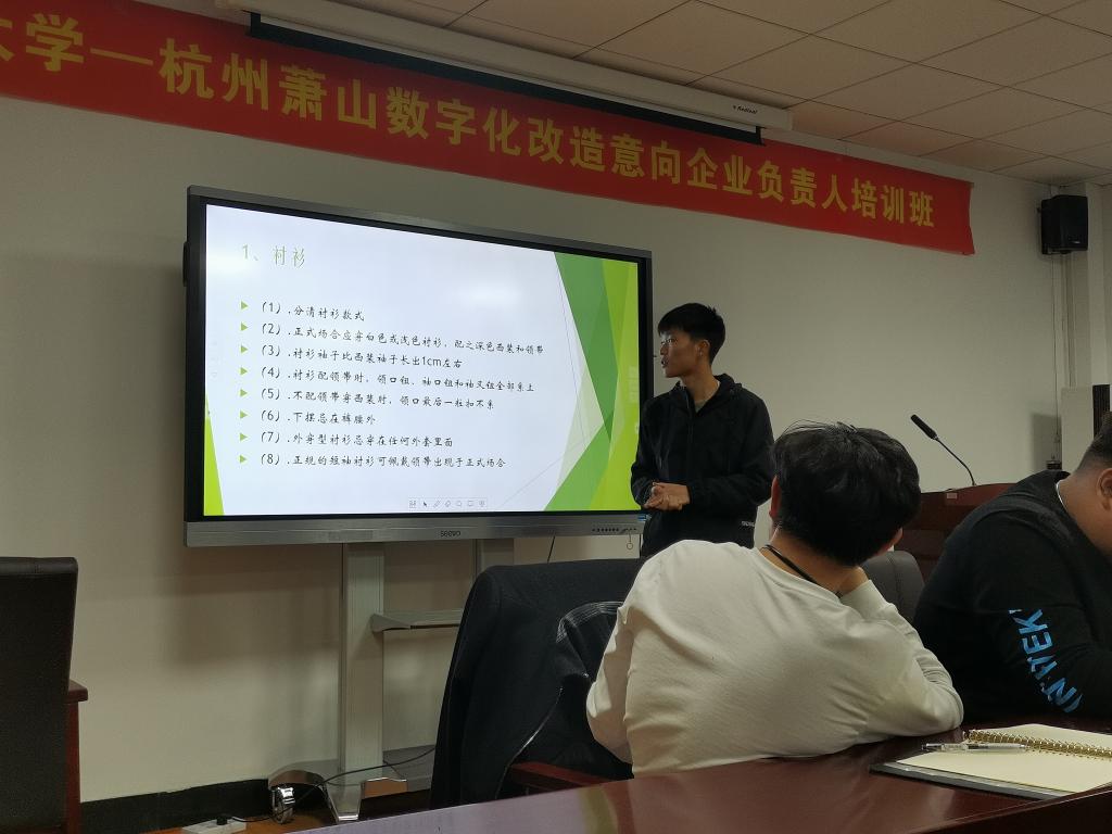 培训会开始,礼仪队副部长们分别给男女队员们讲解了不同的关于服装穿着的各种注意事项,并现场教大家如何打领带。学得快的队员们积极主动去帮助其他还未掌握要领的队员,充分发扬了古天乐代言太阳集团团学组织的团队合作精神。紧接着,副队长们列举了几张服装穿着的错误案例,让队员们挑错、纠错,使队员们对服装穿着的注意事项记忆更加牢固。之后,副队长讲解了颁奖时女队员所应做的工作,并让女队员分为两人一组,现场模拟了颁奖流程,让女队员们通过实践对颁奖工作更加了解。