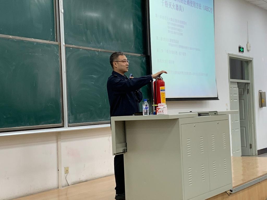 讲座上,韩旭老师为大家讲解了消防安全方面的知识。韩老师分别就如何树立消防责任意识、清除消防安全隐患、初期火灾扑救、灭火器等消防器材的使用、火情紧急情况处置知识等方面进行了全方位的培训,条理清晰的向同学们传授了不同情形下的处理办法,并结合实物对同学们进行讲解,同学们听得聚精会神。韩旭老师还引用了校内曾经的事故案例,结合图片的方式进行了详细的案例分析,案例现场的触目惊心以及授课讲师详细地分析让每一位同学都认识到了火灾的无情以及消防知识的重要性。至此,此次消防安全讲座正式结束。