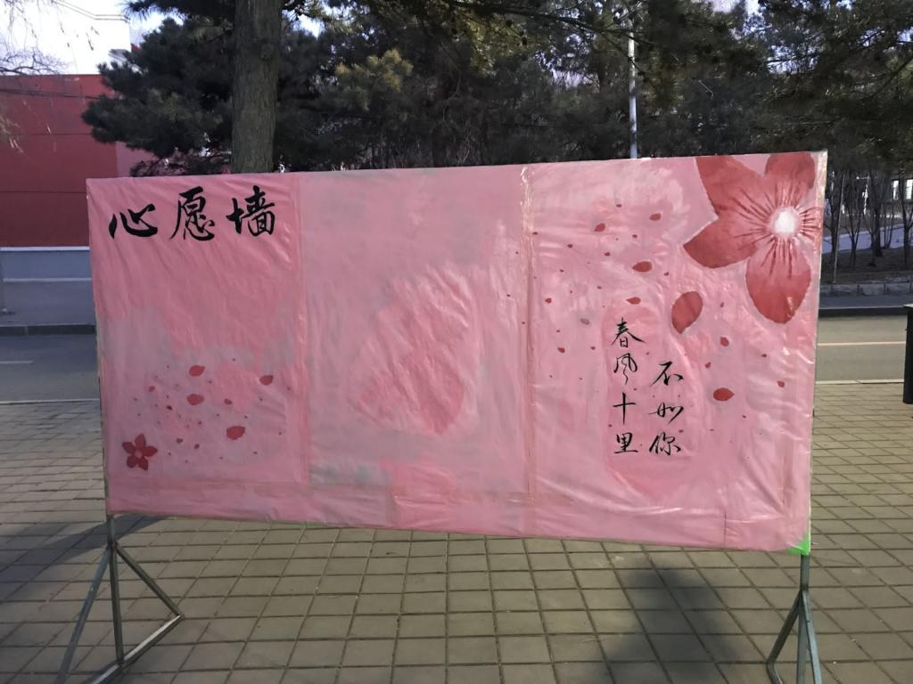 11月28日早8点,外联部副部长及志愿者将场地布置好,寒风刺骨中志愿者们面带微笑,如冬日暖阳般带给前来参加活动的同学温暖。第一位参加活动的是一个大一女同学,在了解活动流程之后,这位女同学小心翼翼地在小纸条上写下自己的愿望,并仔细地将小纸条贴在心愿墙上。随后陆陆续续来了很多女同学参加了这次活动,各种各样的心愿被展示在心愿墙上,有人想要奶茶;有人想要吃橙子;还有人想要结伴上自习......木质的心愿墙也好似因此发出了光芒。每个愿望既是女生内心的期许,更是男女生接触的宝贵机会。参加这个活动不只是女生,还有很多热心善良的男生,他们在心愿墙上认真观察,发现在自己能力范围内的愿望,便会虔诚地摘下来,之后他们会用自己的努力来帮女生实现愿望,博得女生的青睐。活动一直持续到晚上7点,部员们不怕冷,不怕累,心愿墙上每多一个愿望,他们就会露出欢喜的笑容。心愿墙上贴满了新奇有趣的愿望,这既是部员们辛苦了一天的成果,也是吉大学子美好纯澈的愿望。