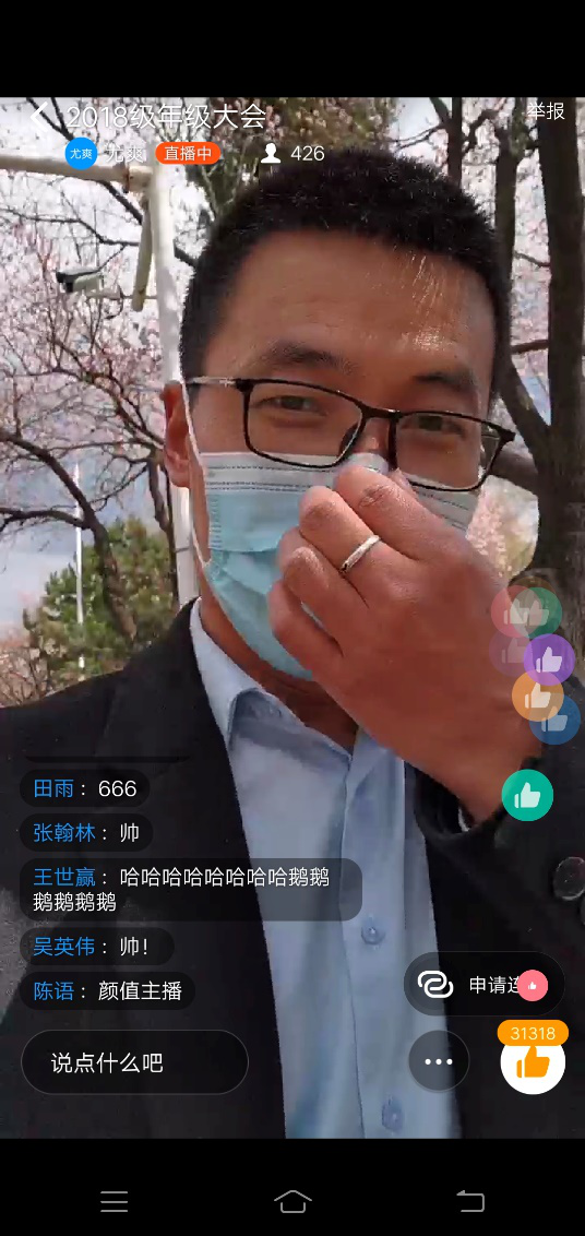 受疫情影响,今年的就业形势不容乐观。尤老师希望同学们提前做好个人发展规划,有就业、考研、保研等意向的同学要提前谋划,做好充足准备。大会最后,尤老师还当起“思政主播”,对疫情发生以来的网上舆论事件进行了深刻剖析,引领同学们认清中国特色社会主义制度的显著优势,提高政治站位,树立大局意识。