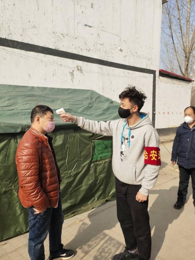 内蒙古自治区包头市的18级肖子龙同学,在当地积极参加疫情防控的志愿者活动,于社区的体温监测点记录来访者体温以及身份信息。他表示,希望以自己微薄之力为国家防控工作献出自己的力量。