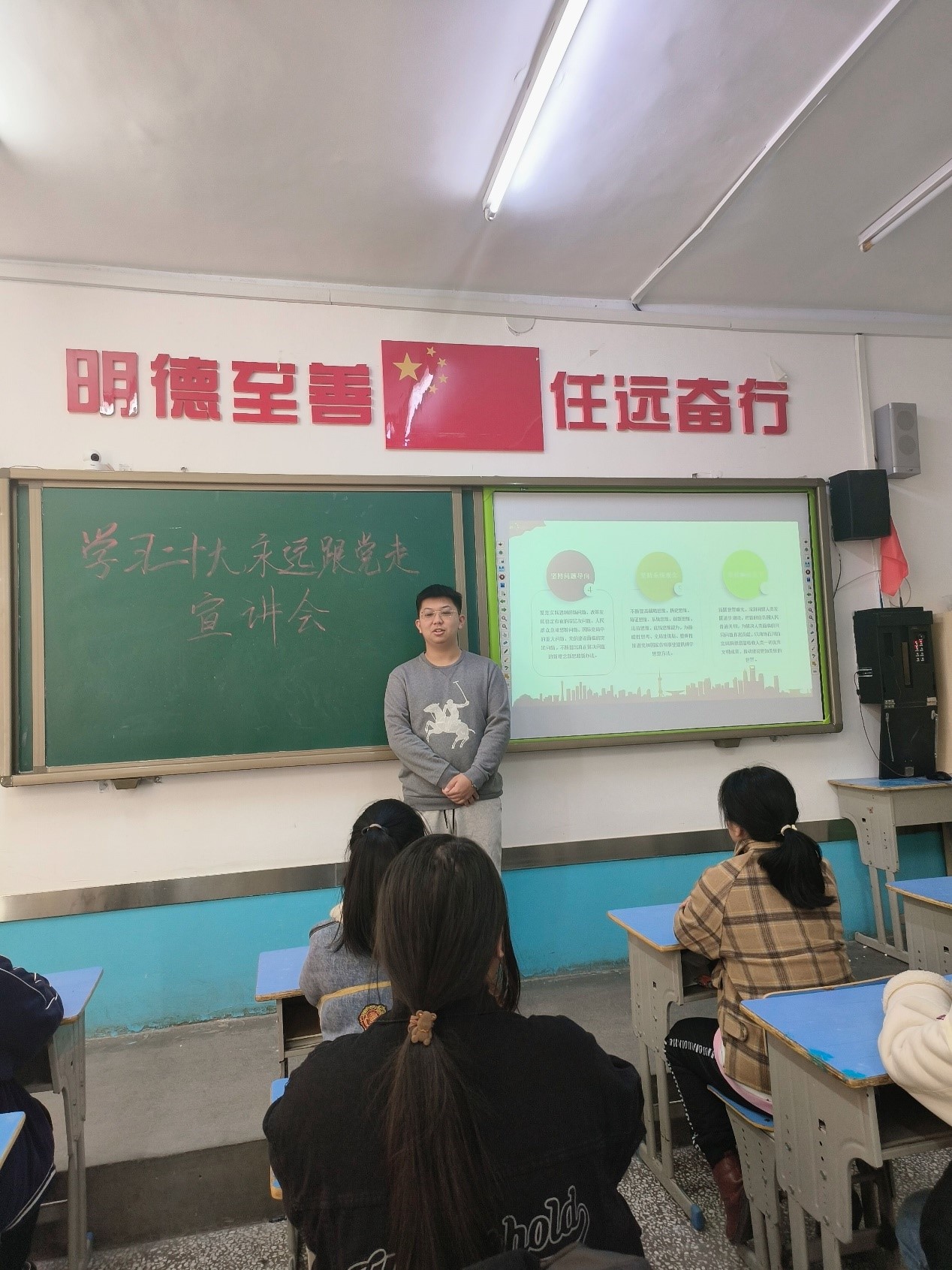 为积极响应中央深入学习贯彻党的二十大精神的相关号召,践行新时代党的建设总要求和新时代党的组织路线,2022年12月28日至2023年2月13日,古天乐代言太阳集团2021级石文凯实践团队进行了党的二十大精神宣讲活动。
