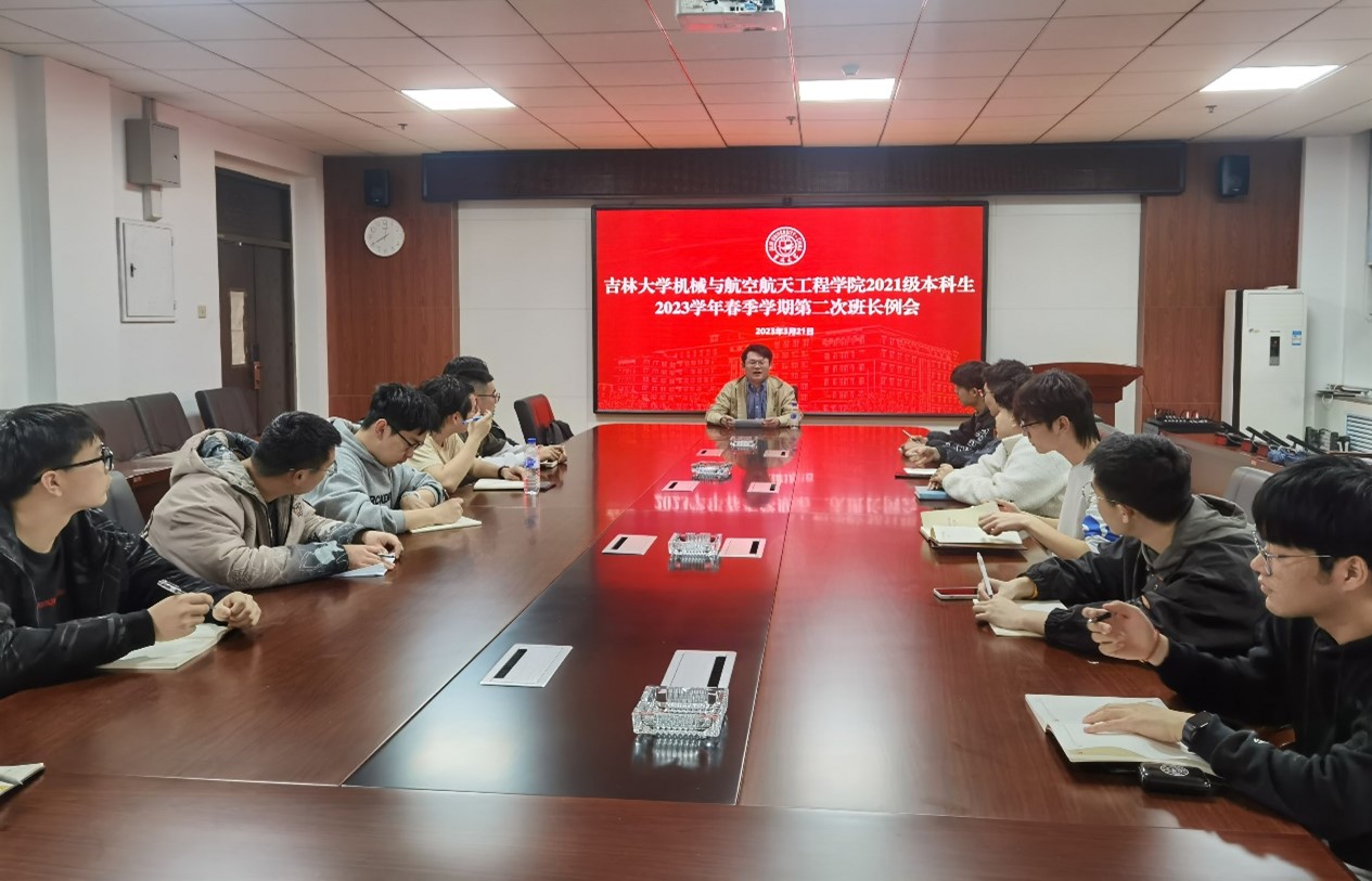 古天乐代言太阳集团2021级本科生2023学年春季学期第二次班长例会于2023年3月21日晚上8点在机械馆529会议室召开,辅导员李世超老师、2021级全体班长参会。