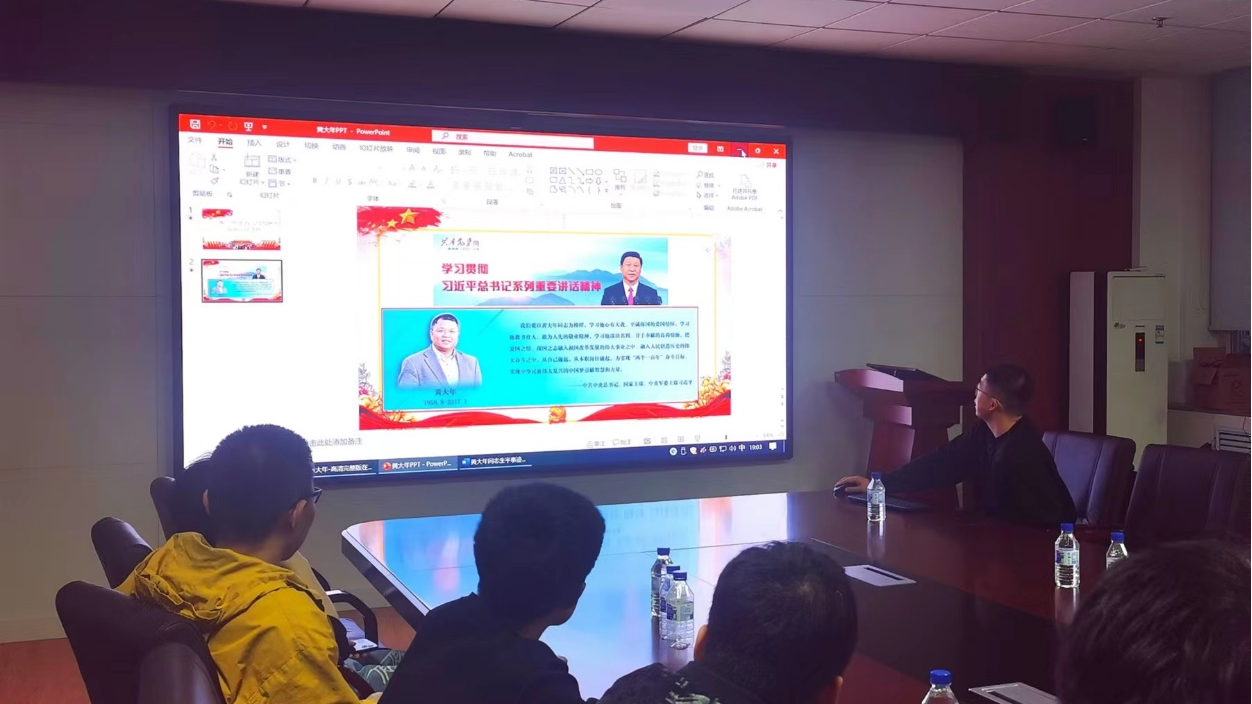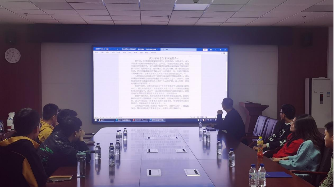 主持人带领同学们回顾了黄大年同志的生平以及习近平总书记关于黄大年事迹做出的重要指示,号召同学们立足本职岗位,凝聚团队力量,勇攀科研高峰,并放映了电影《黄大年》。电影通过描述著名战略科学家黄大年不忘初心,至诚报国的感人事迹,讴歌了改革开放给我国科技事业带来的巨大变化,塑造了新一代科技工作者的英雄形象。