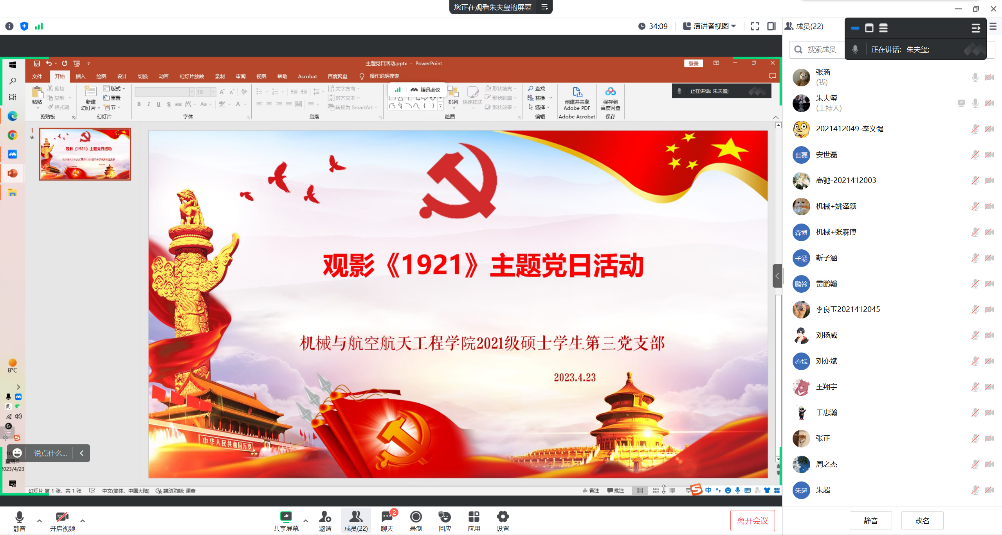 为进一步加强支部党员的思想教育,回顾党的光辉历程,引导各位党员知史爱党、知史爱国,古天乐代言太阳集团2021研究生员工第三党支部于4月23日举行线上观影党日活动,共同观看电影《1921》,本次活动由支部书记朱夫玺主持,党支部全体党员参与。