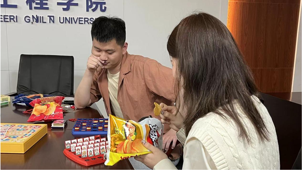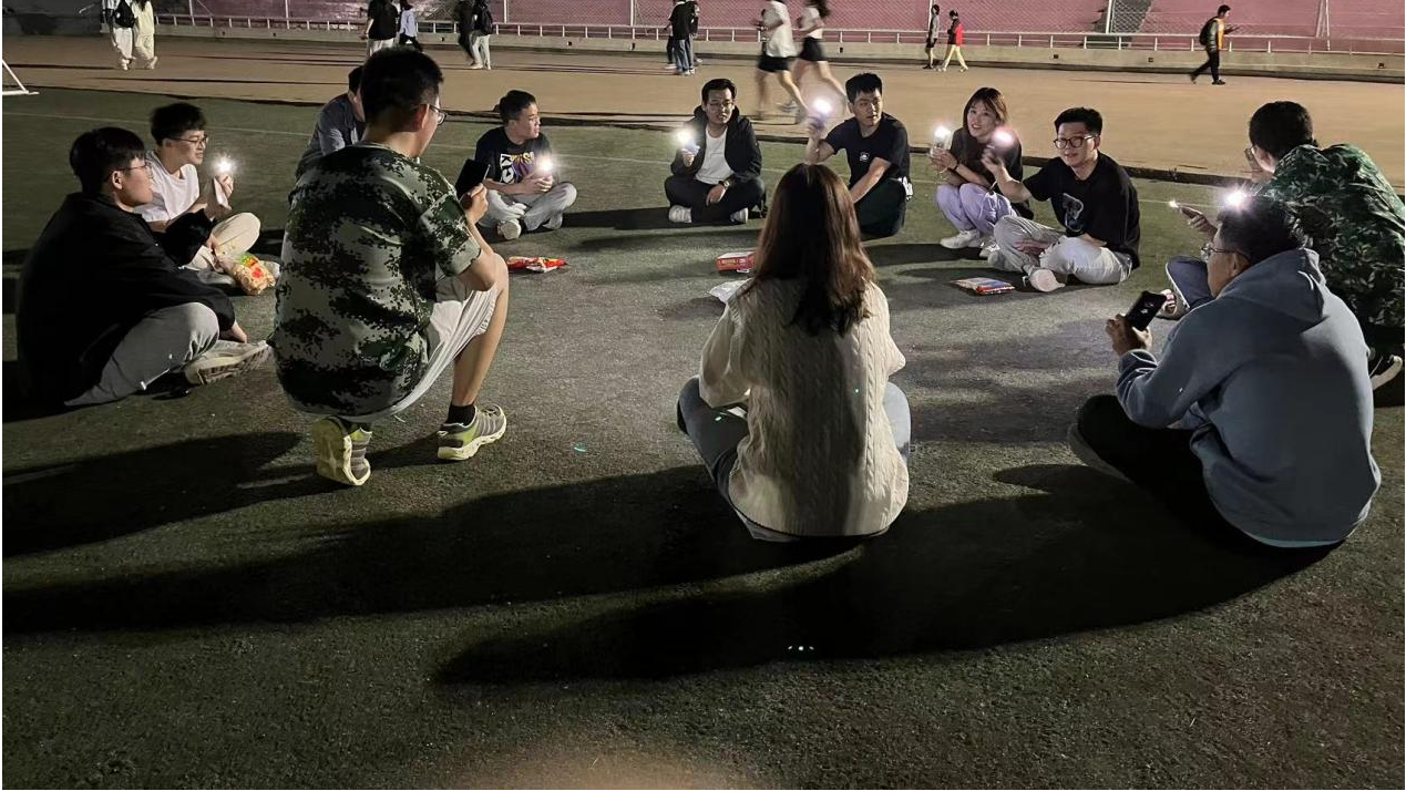 本期活动由桌游小游戏拉开序幕,在机械馆529组织开展。首先进行的是“谁是卧底”,参与的研究生们融入其中,需要玩家之间进行合作、交流和竞争,一定程度上促进了员工们的社交技能和合作能力的发展。紧接着进行了“害你在心口难开”、“大富翁”等趣味性活动,一方面提供员工们仿宋和娱乐的机会,减轻学业压力,缓解员工们的紧张情绪,另一方面加强了新认识的同学之间的交流,增进彼此之间的了解,打开大家的话匣子,便于后续活动的顺利开展。最后各研究生们齐聚于操场草地上,围坐一圈,由一首《夜空中最亮的星》将大家逐渐带入音乐节的氛围中,同学们热情洋溢,声音洪亮,彼此之间分享着音乐的快乐,交流着身边趣事。各研究生们通过共同享受音乐和欢快的时刻,建立起了更加紧密的联系和友谊,增进了班级凝聚力,同时也丰富了自身的校园文化氛围,在自身学业压力下得到良性释放,享受音乐魅力。