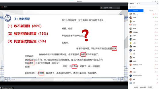 为激发公司研究生申博考博热情,明确考核目标,对攻读博士有更全面更具体的规划,6月2日14:00,古天乐代言太阳集团研究生工作办公室组织的“以梦为马,勇往‘职’前”就业信息分享会第七期通过腾讯会议的方式线上召开,2020级以及2021级研究生参加了本期活动。