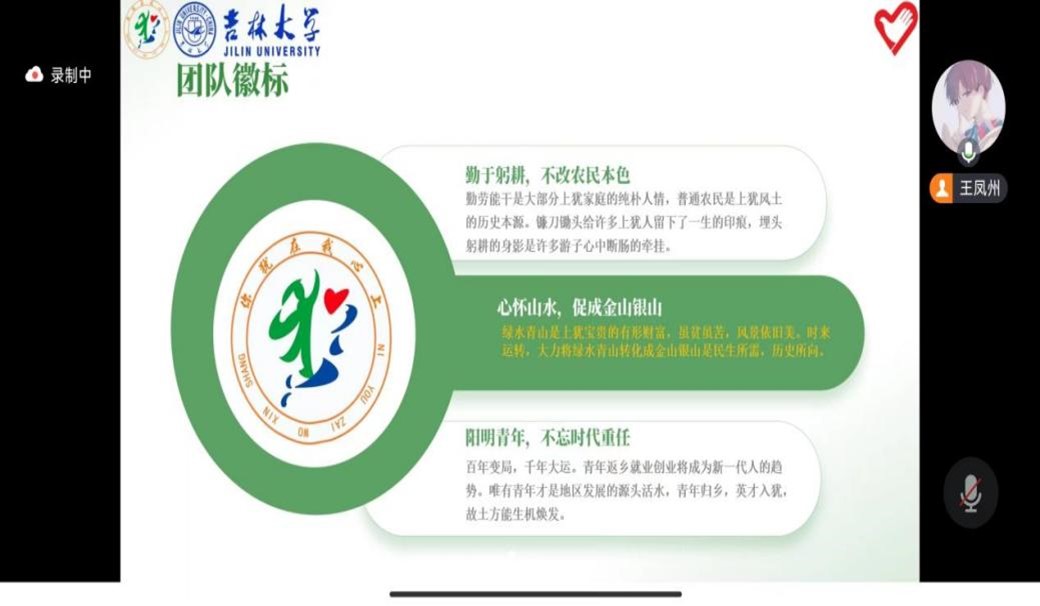 首先,王凤州同学介绍了由团队成员自主构思设计的团队文化标识。团队名称“你犹在我心上”的由来。这句话出自经典歌曲《你犹在我心上》,以上犹之名,将志愿服务实践精神贯彻落实到上犹热土上,强调你犹山水在我心上,是保护绿水青山,促进转化为金山银山;你犹文化在我心上,是赏非遗千古美丽,植文化厚重底蕴;你犹人民在我心上,是远行于上犹山水间,近抚人间烟火气。团徽的设计理念反映了三层含义:勤于躬耕,不改农民本色;心怀山水,促成金山银山;阳明青年,不忘时代重任。在此基础上设计了队旗和队服,紧扣本次社会实践主题。