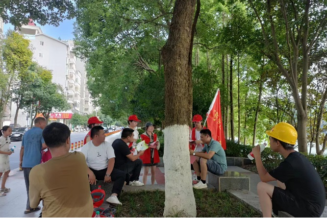 在镇团委的支持下,8月3日上午,团队来到上犹县寺下镇。实践过程中队员们手持垃圾袋顶着烈日在当地母亲河童子江沿岸巡河近两公里,将岸边长廊上的垃圾一一捡起,减少了对河流的污染,保护了当地河流生态环境。8月5日,团队先于东山镇打扫草坪卫生,清捡落地垃圾。团队成员知道要建设美丽家乡,需要全民认识到爱护生态环境的重要性,因此团队又在备田社区工作人员带领下走街串巷发放了数百份创建文明卫生县的倡议书。团队事迹被上犹宣传、上犹融媒体报道。