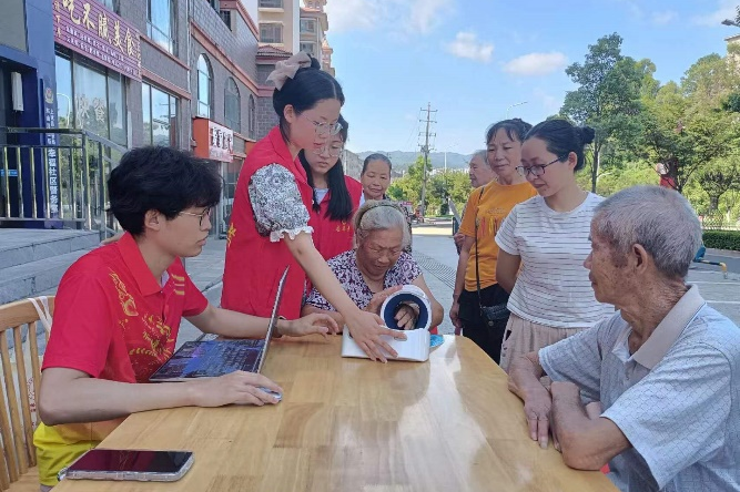 8月5日至6日,团队于幸福社区开展了一系列关爱留守儿童和空巢老人的活动。首先队员们教孩子们绘画,然后带领孩子们观看防溺水及安全用电的教育视频,此外还开展了“童心向党,红色引领”思政教育活动,介绍家乡的红色历史,让红色革命精神在孩子们心中生根发芽。此外,团队成员为老人测量血压同时团队医养专业的成员用所学的科学知识向老人们科普平时生活饮食习惯需注意的问题。团队成员还前往一位残疾老奶奶和一位患有高血压的老爷爷家中进行测量血压、把脉等活动。团队事迹被文明江西、中青网宣传报道。