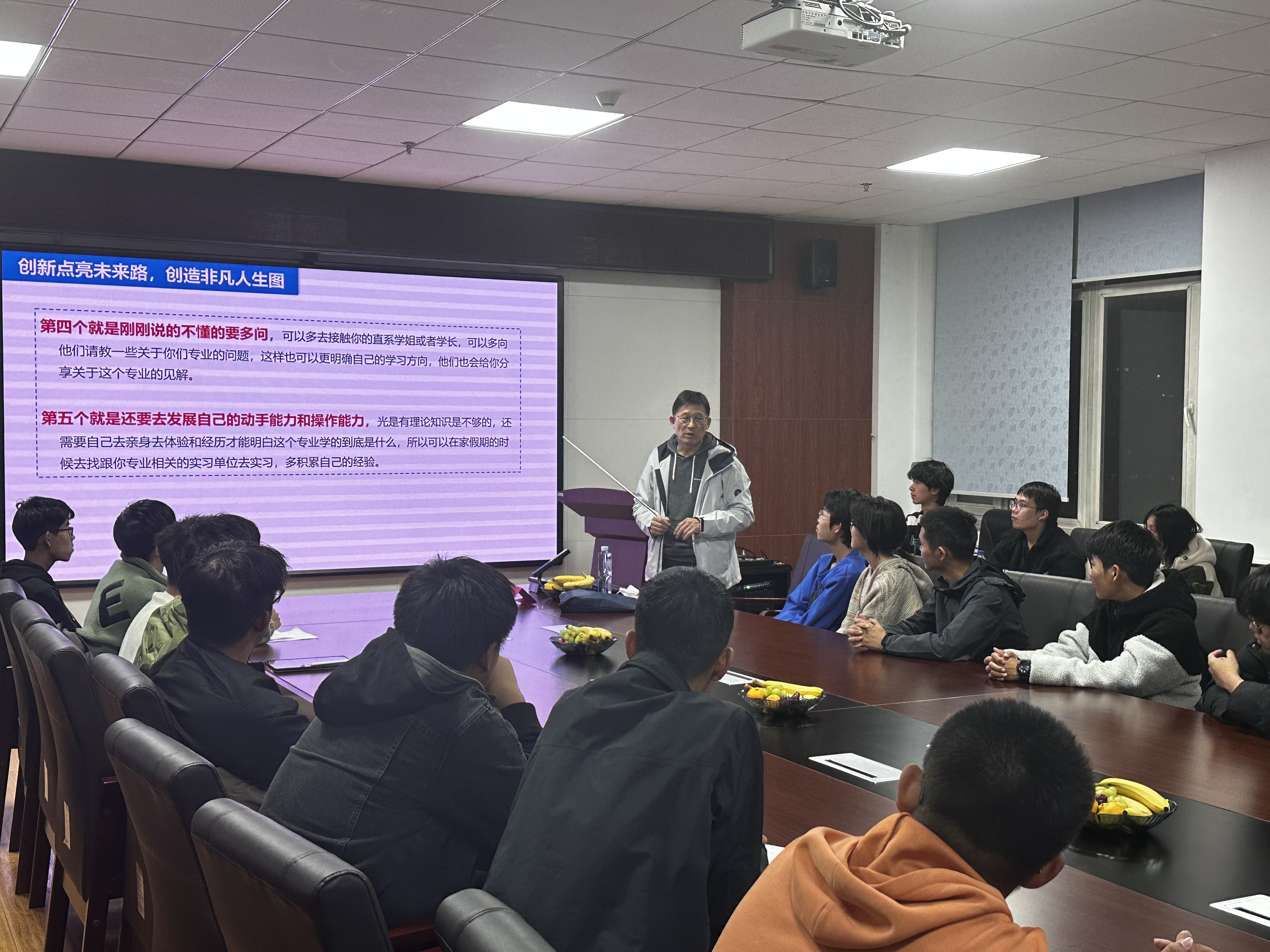讲座不止限于学习。在过程中,曲老师还指出了生活和员工工作的重要性,不光以老师的身份,更是以长辈的身份给与参会的新生很多建议。曲老师尤其强调了身体健康的重要性,“一副好的身体是学习和工作的本钱”。同时他还鼓励同学多多尝试,劳逸结合,要过多姿多彩的老员工活。