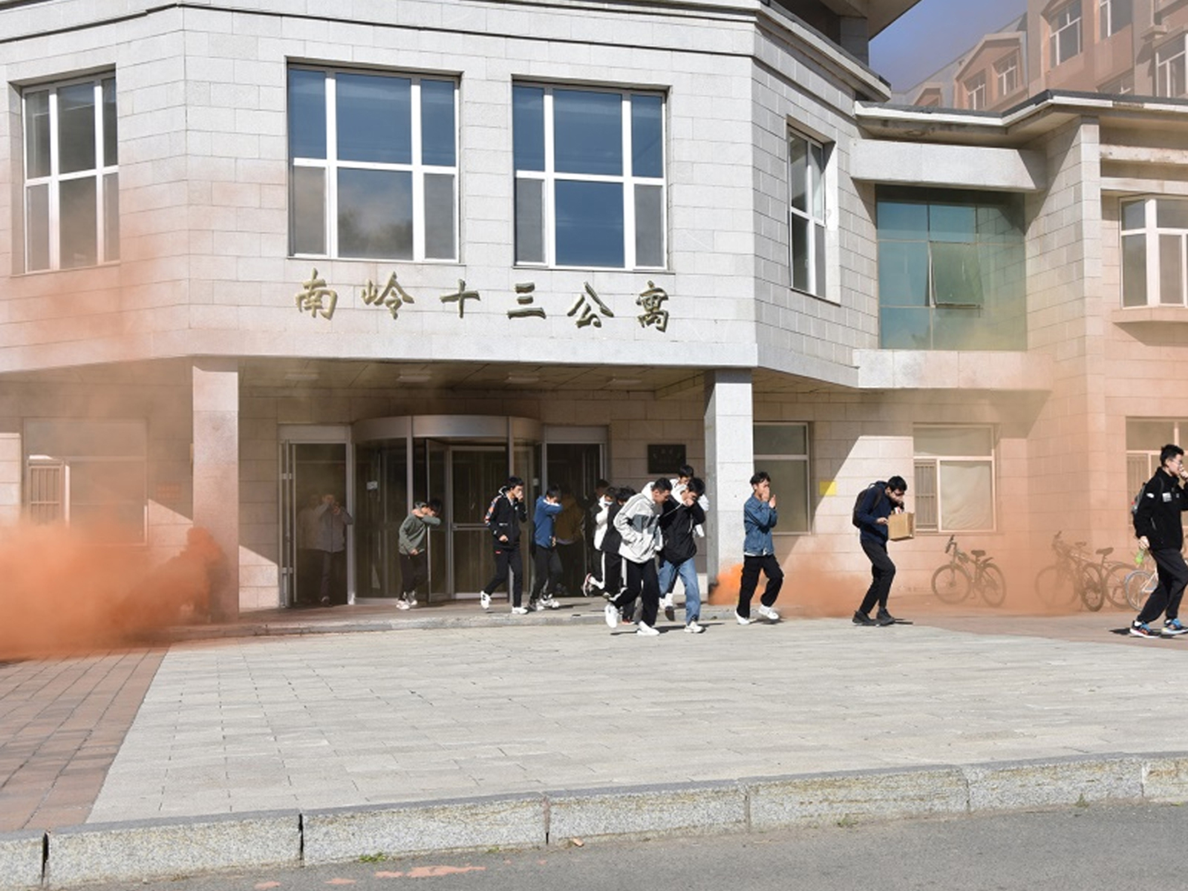 演练分为疏散演练和灭火演练。首先由保卫部门在公寓门前释放烟雾器,公寓值班人员按下手动报警器,所有安全出口在第一时间打开。员工根据以往了解的最佳逃生路线和出口位置,按现场实际情况进行应急处理,以最快速度疏散至安全地带。