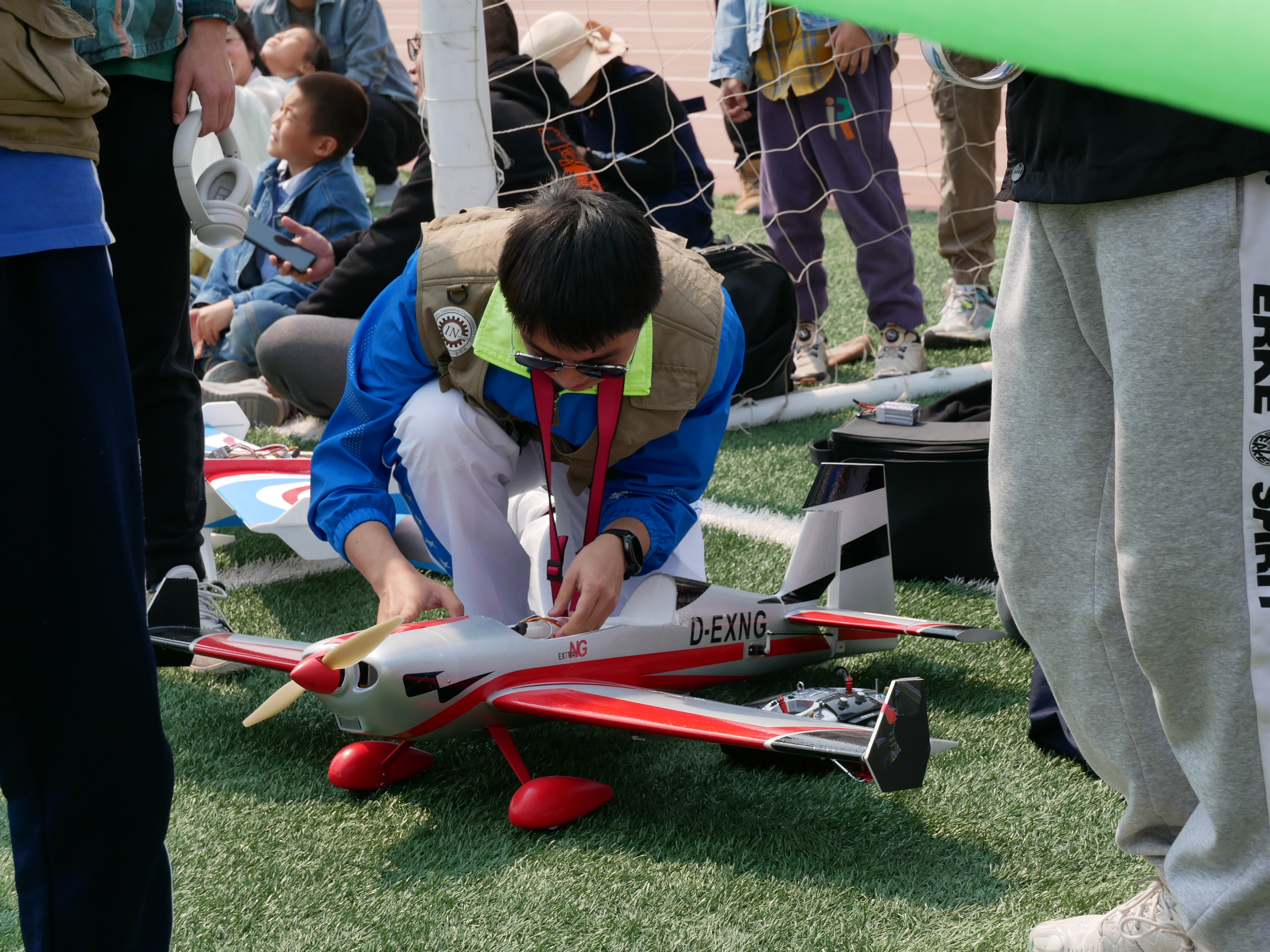 此外,公司团委在南岭校区体育场同步举行“烟炫碧彩,会翼飞天”——固定翼飞机飞行表演,公司航模队吕作义等同学现场操作多台固定翼飞机在校园上空盘旋飞行,彩旗、彩烟在蔚蓝的天空中绘出一道道青春轨迹,引得在场观众称赞连连。