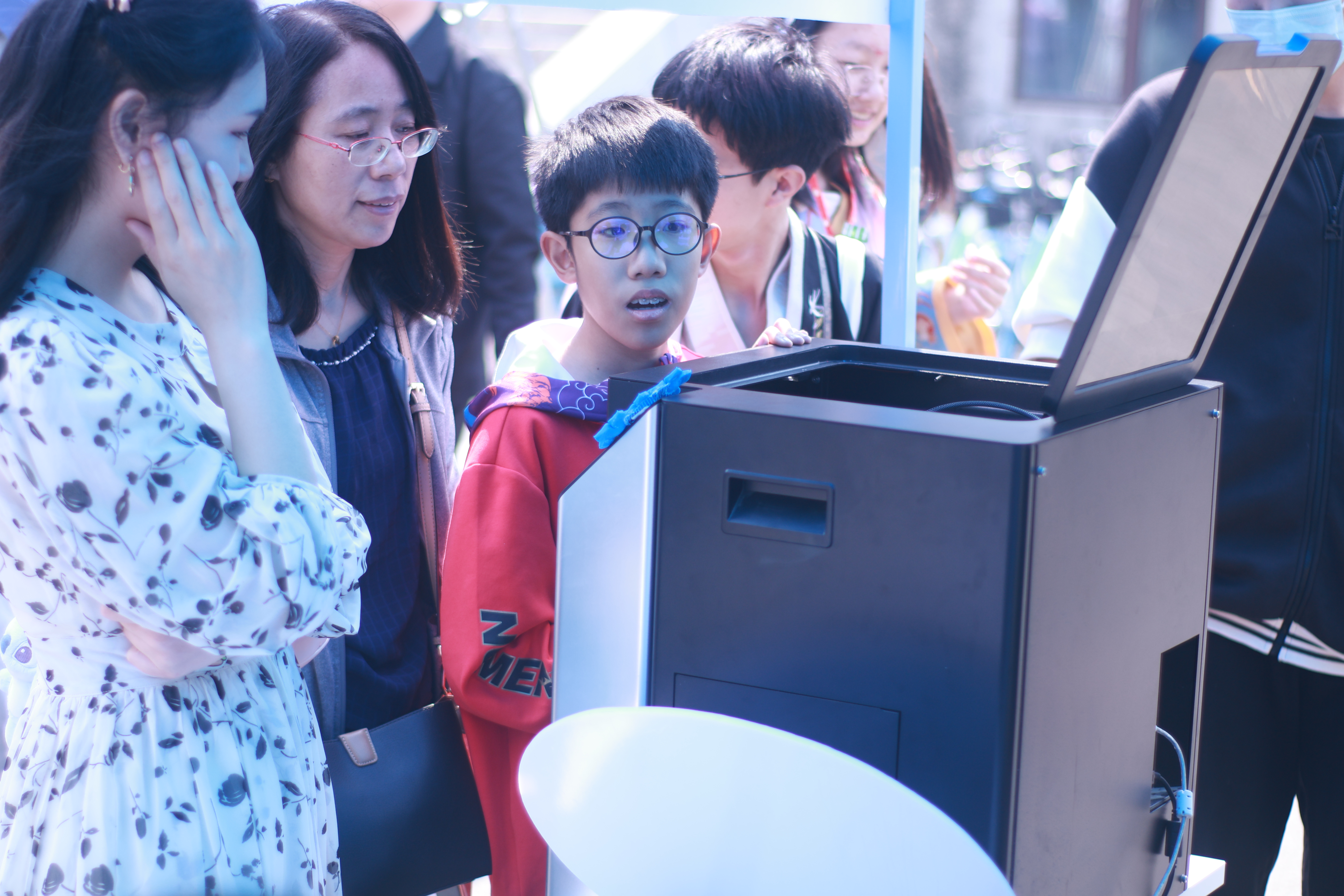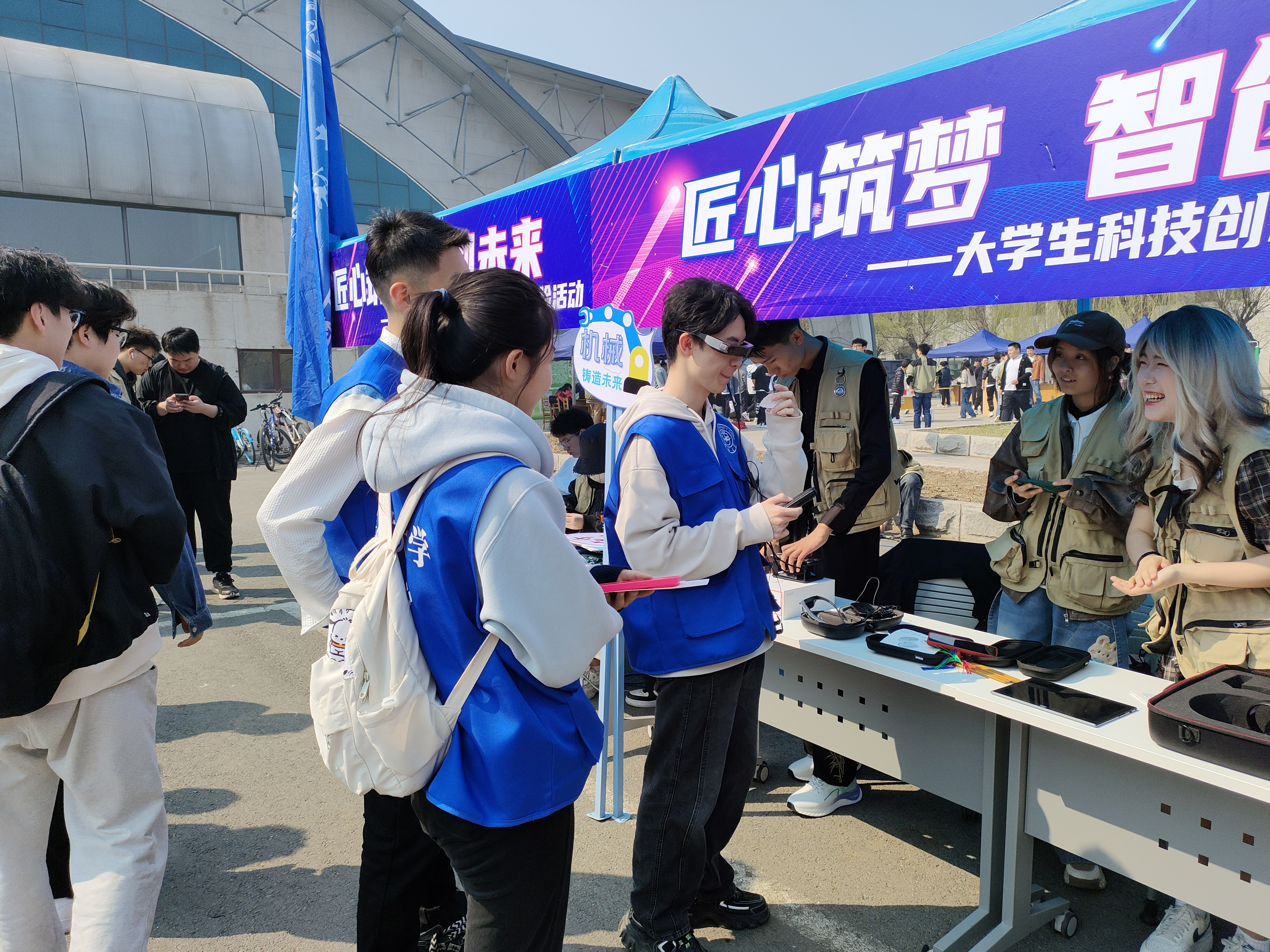 活动在南岭校区体育馆门前举行,现场设置科技体验区、科技实践作品展示区和竞赛代表作品展示区。科技体验区开放VR眼镜体验和3D打印体验活动,公司工科创新基地志愿者为来往师生做讲解并引导游客操作设备,让现场师生亲身感受虚拟现实的别样风景、体验3D打印增材制造过程。