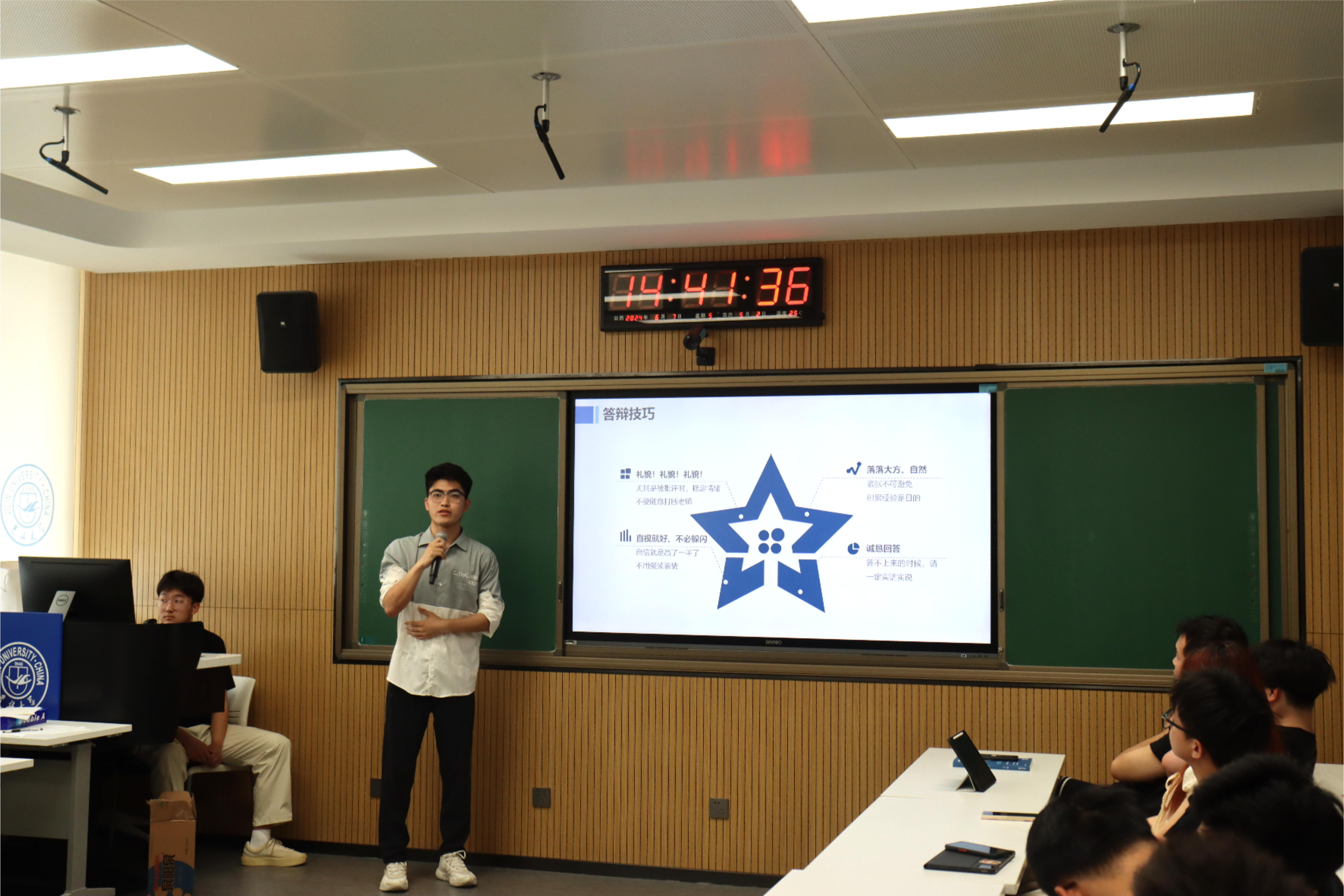 分享会上,10位优秀学子根据自身保研经验,通过PPT介绍和座谈的形式先后讲解了推免流程、夏令营院校选择、简历投递、面试过程中的注意事项。并就保研过程中需要提前做好的准备进行了详细介绍。分享过程中,学长学姐着重强调了例如投递策略、导师选择等方面问题,提醒同学们做好专业知识复习,增强信心。