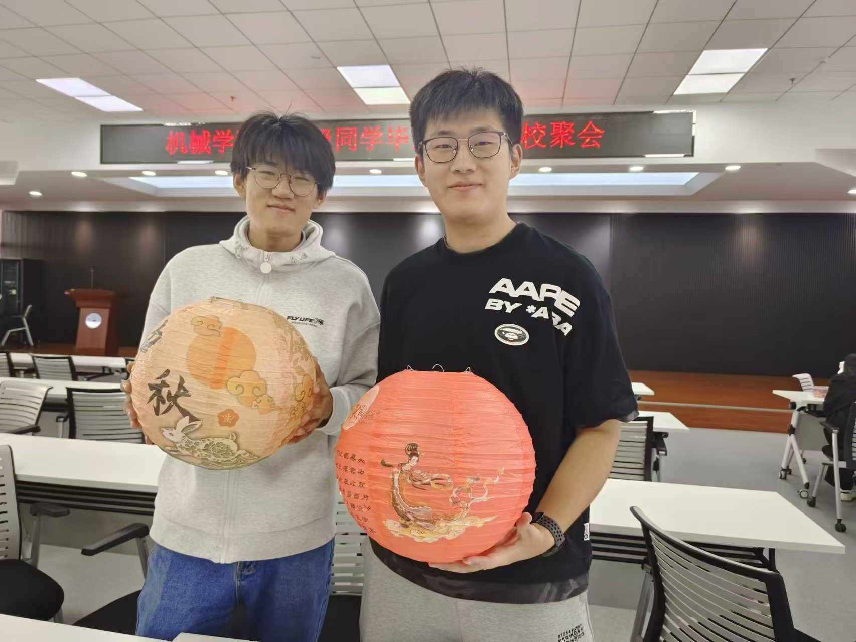 机械馆八楼报告厅充满了浓厚的节日氛围,室内摆放着员工们亲手绘制的花灯。这些花灯形态各异,有传统的兔子灯、荷花灯,也有充满创意的现代设计。除了手绘花灯,自制月饼也是活动的一大亮点。同学们利用员工会工作人员提前准备好的材料制作了多种口味的月饼,如豆沙、凤梨、五仁等。猜灯谜的游戏更是将活动推向了高潮,桌子上摆放着一条条谜语,同学们纷纷驻足思考,竞相猜测谜底,现场气氛热烈而欢乐。寄情书信活动让同学们向远方的亲人或朋友表达思念之情,在书信中,他们诉说着自己的心声,分享着中秋的欢乐和祝福。