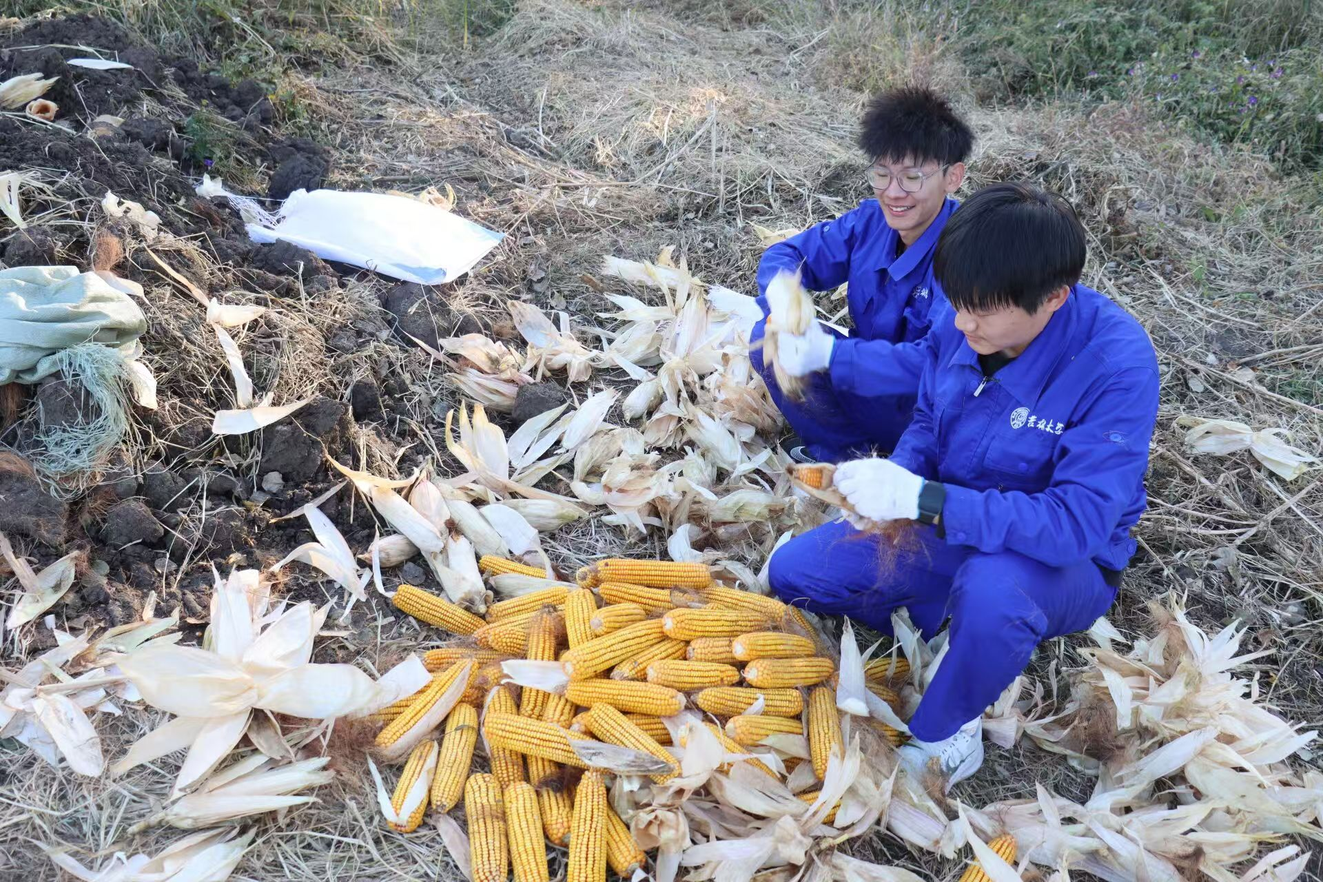 怀揣着对这片土地的崇敬,同学们纷纷开始了自己的采摘任务。员工队伍分工合作,有的割玉米、有的搬运装箱、有的分选套袋,采摘过程井然有序,处处洋溢着丰收的喜悦。在热情与辛勤的收割劳动中,同学们出色的完成了本次采摘任务。