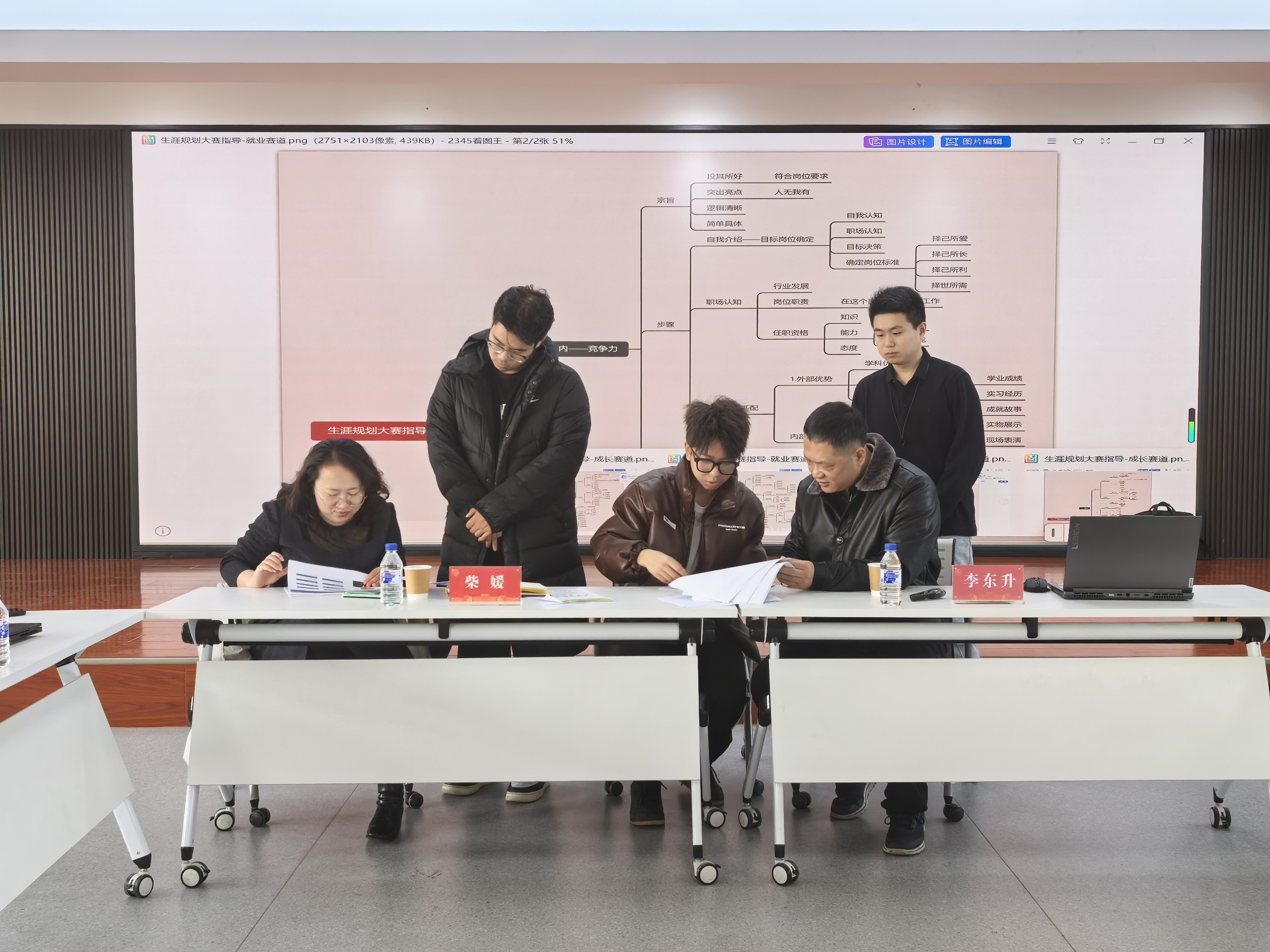 首先,李东升老师从内在专业度和外在表现力两方面入手,分别为参加成长赛道和就业赛道的同学讲解了职业规划的重要性,分享了实用的备赛策略。在交流指导环节,两位老师对不同参赛选手的赛前准备资料认真分析并悉心指导,为他们指点迷津。